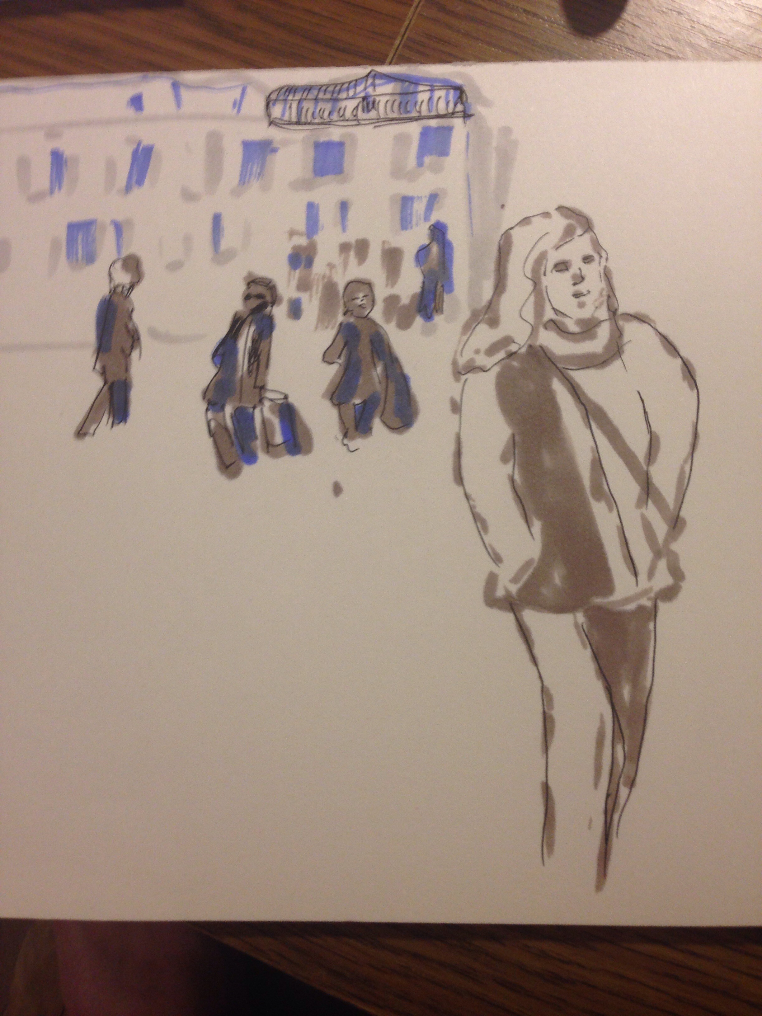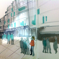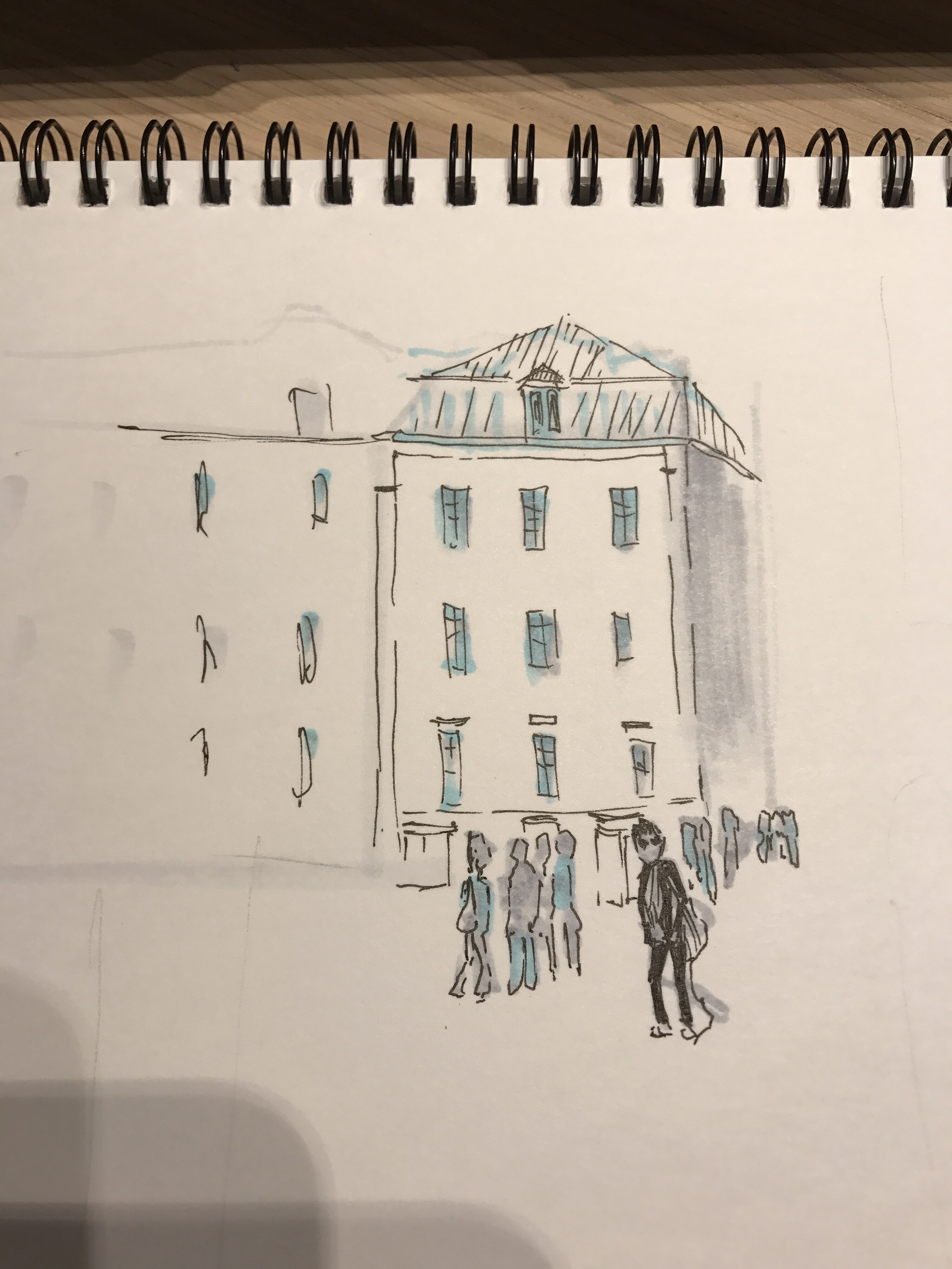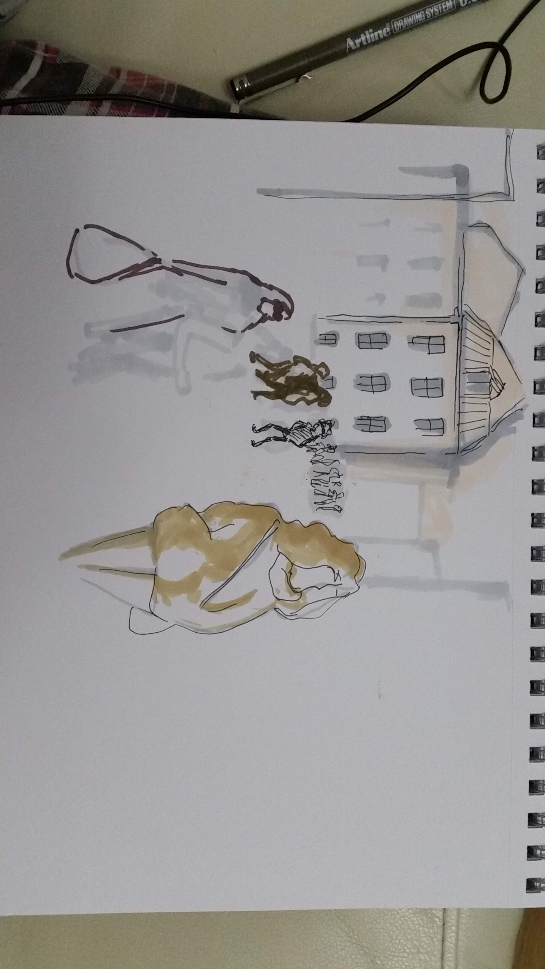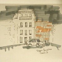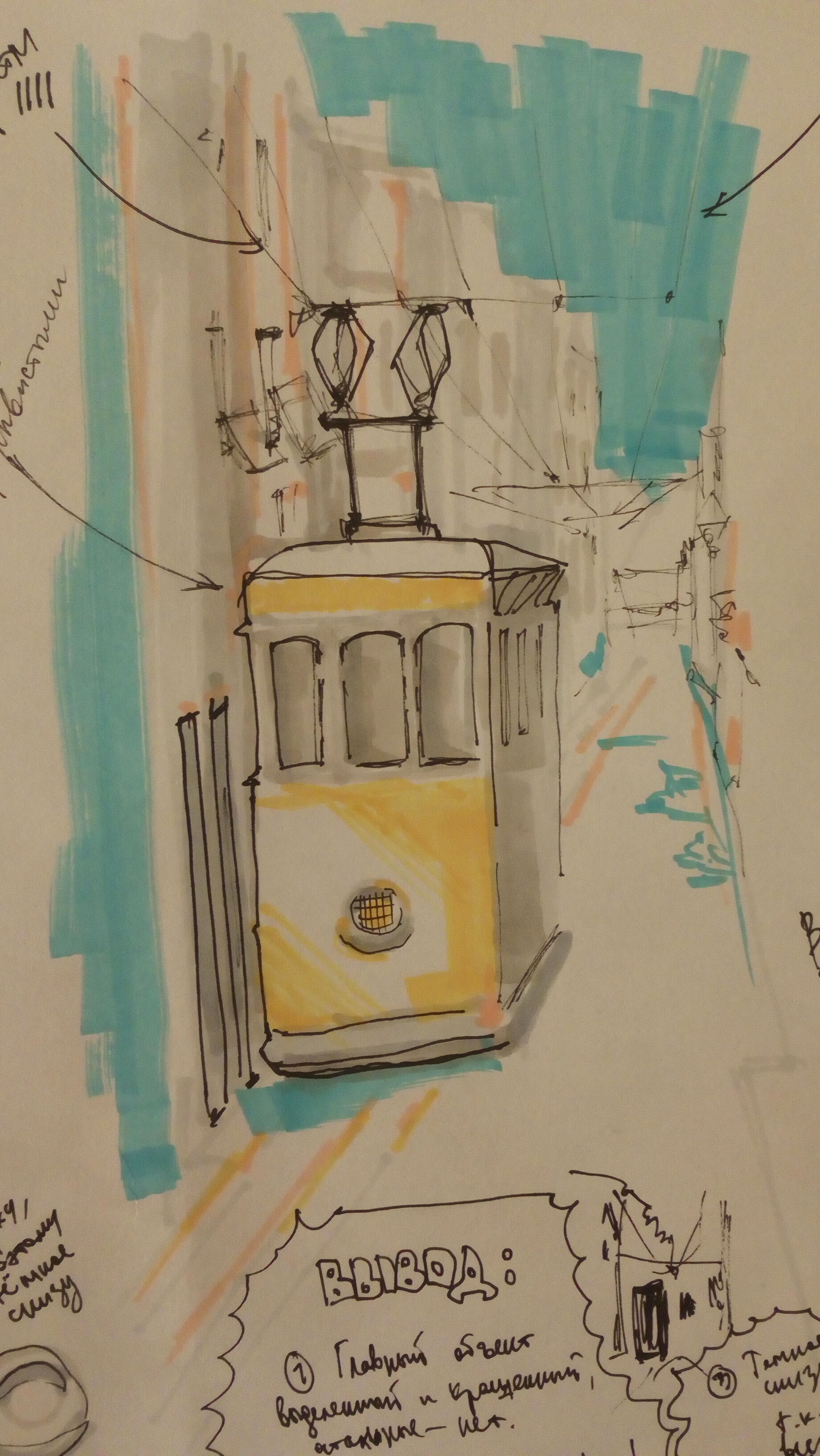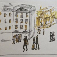 Учимся видеть группы домов, машин, пешеходов и пробуем передать на бумаге характер города ограниченным количеством маркеров.