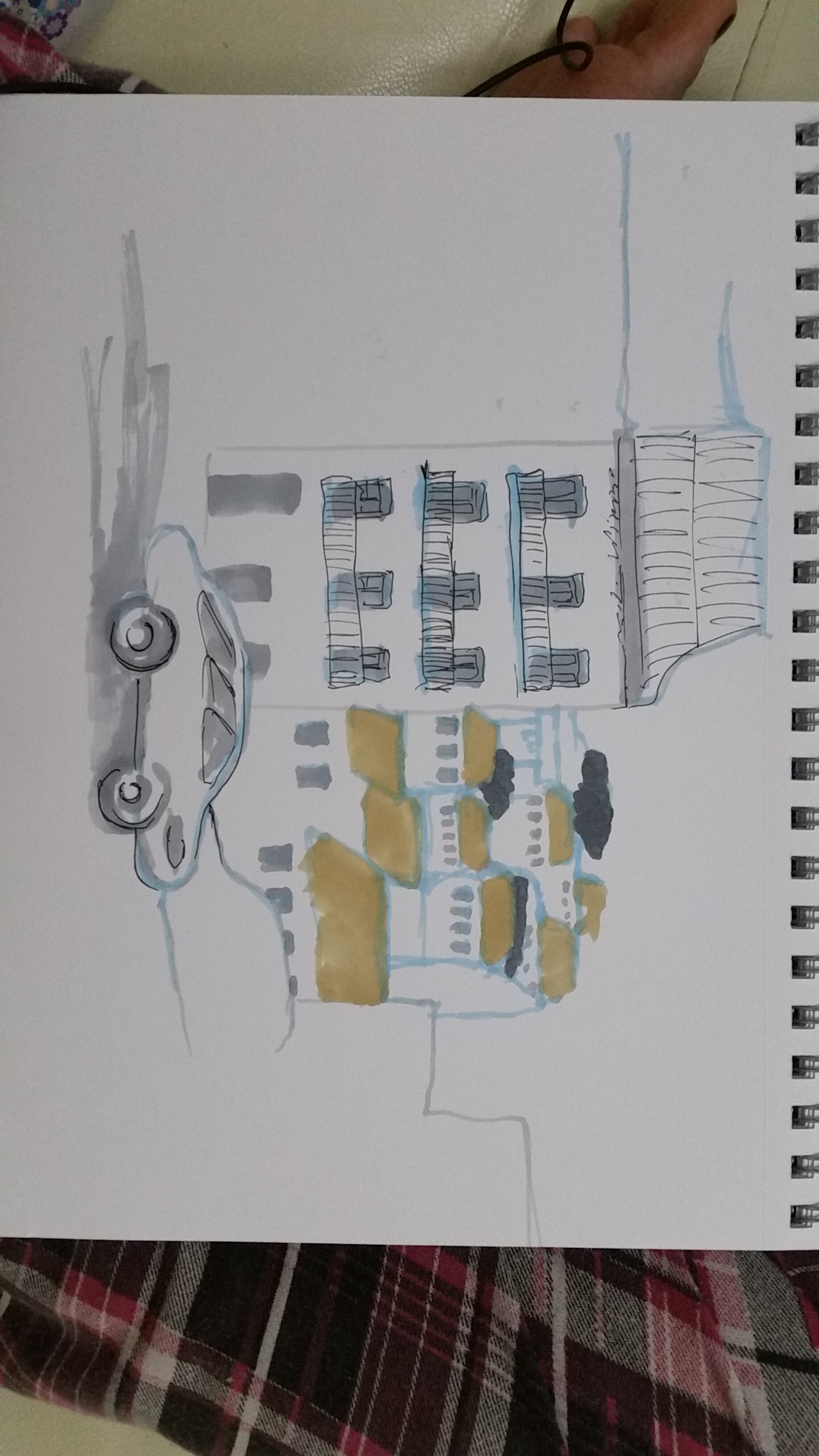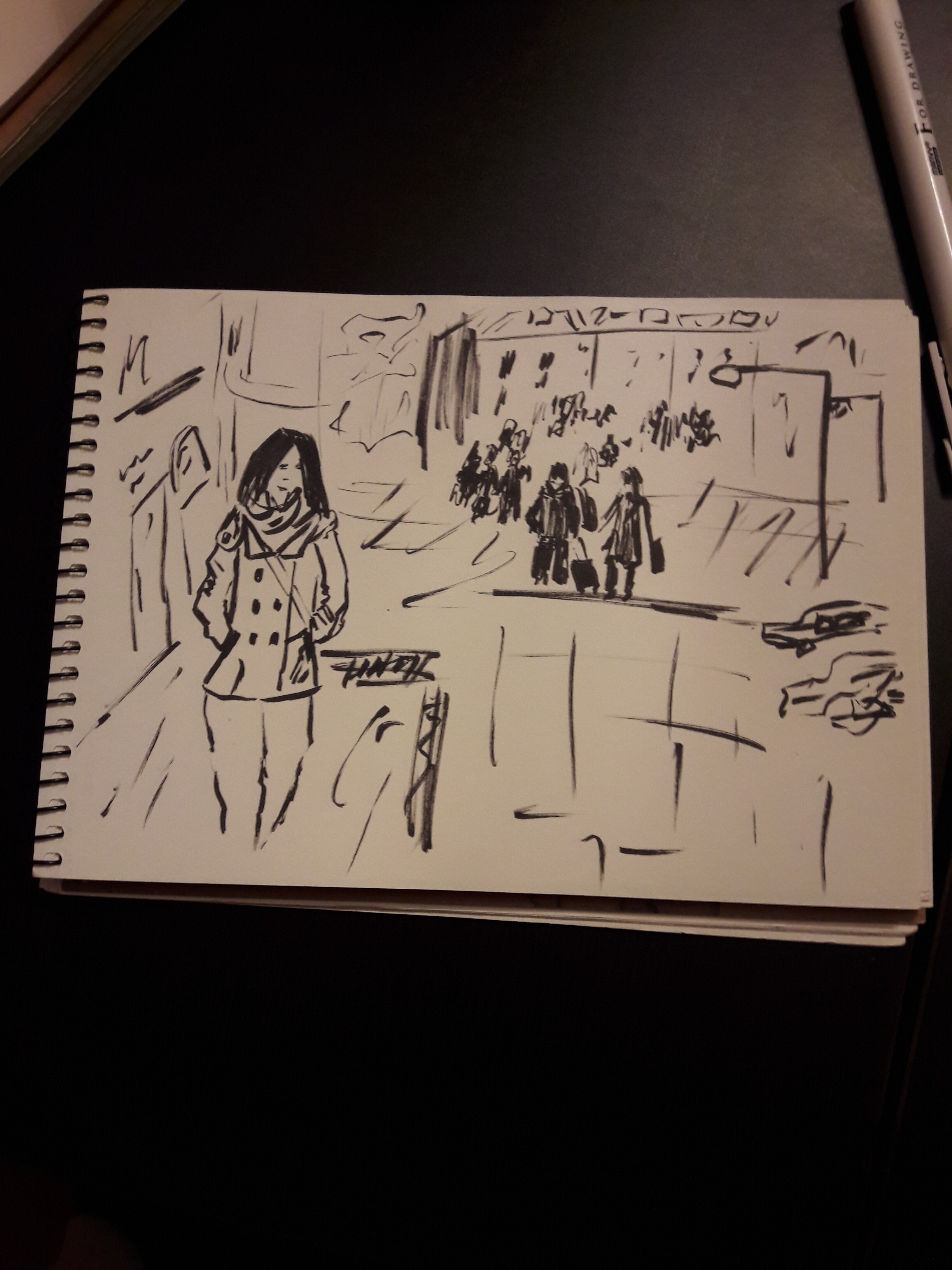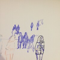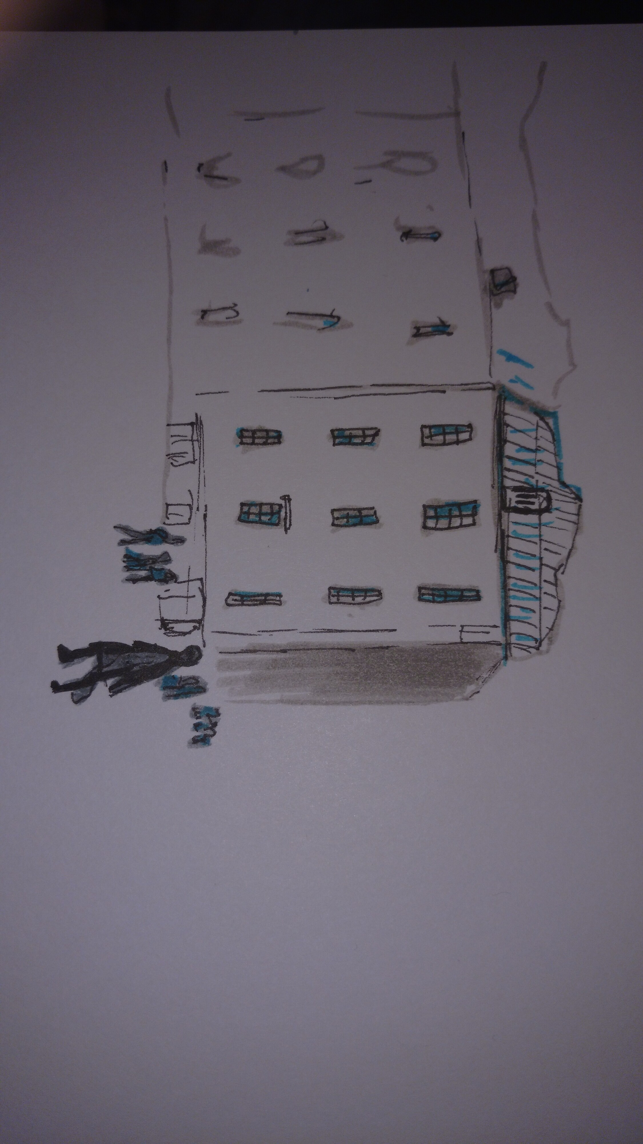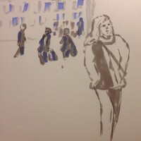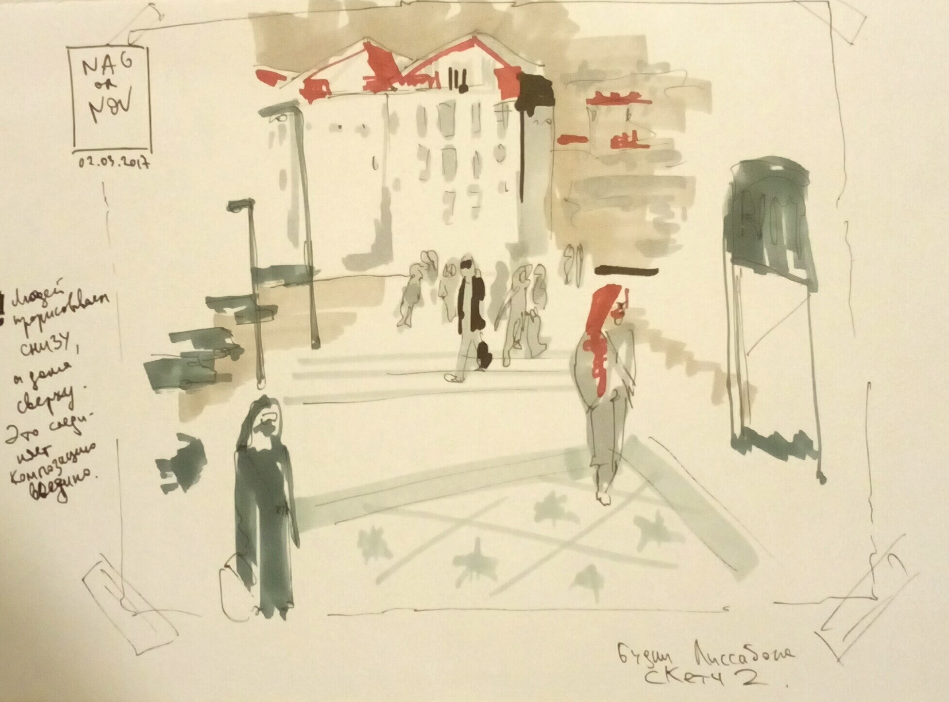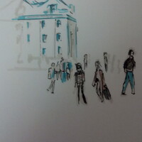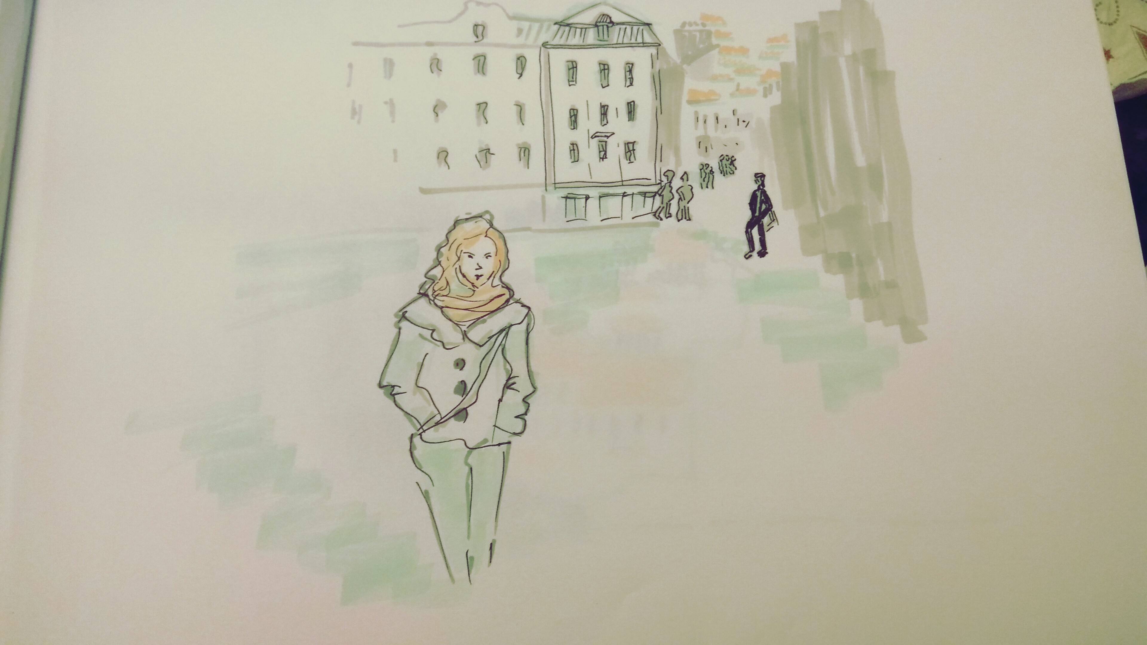 Учимся видеть группы домов, машин, пешеходов и пробуем передать на бумаге характер города ограниченным количеством маркеров.