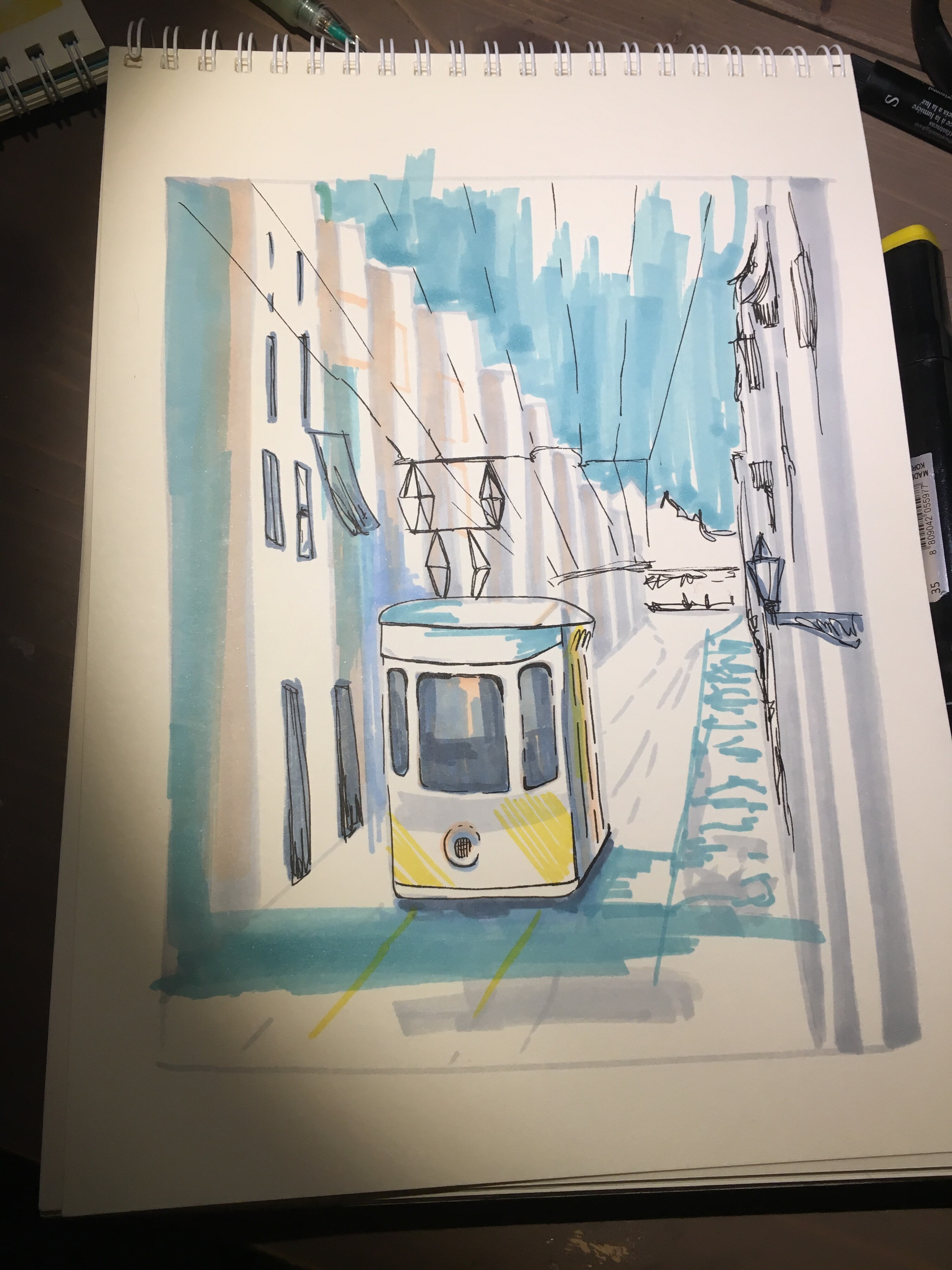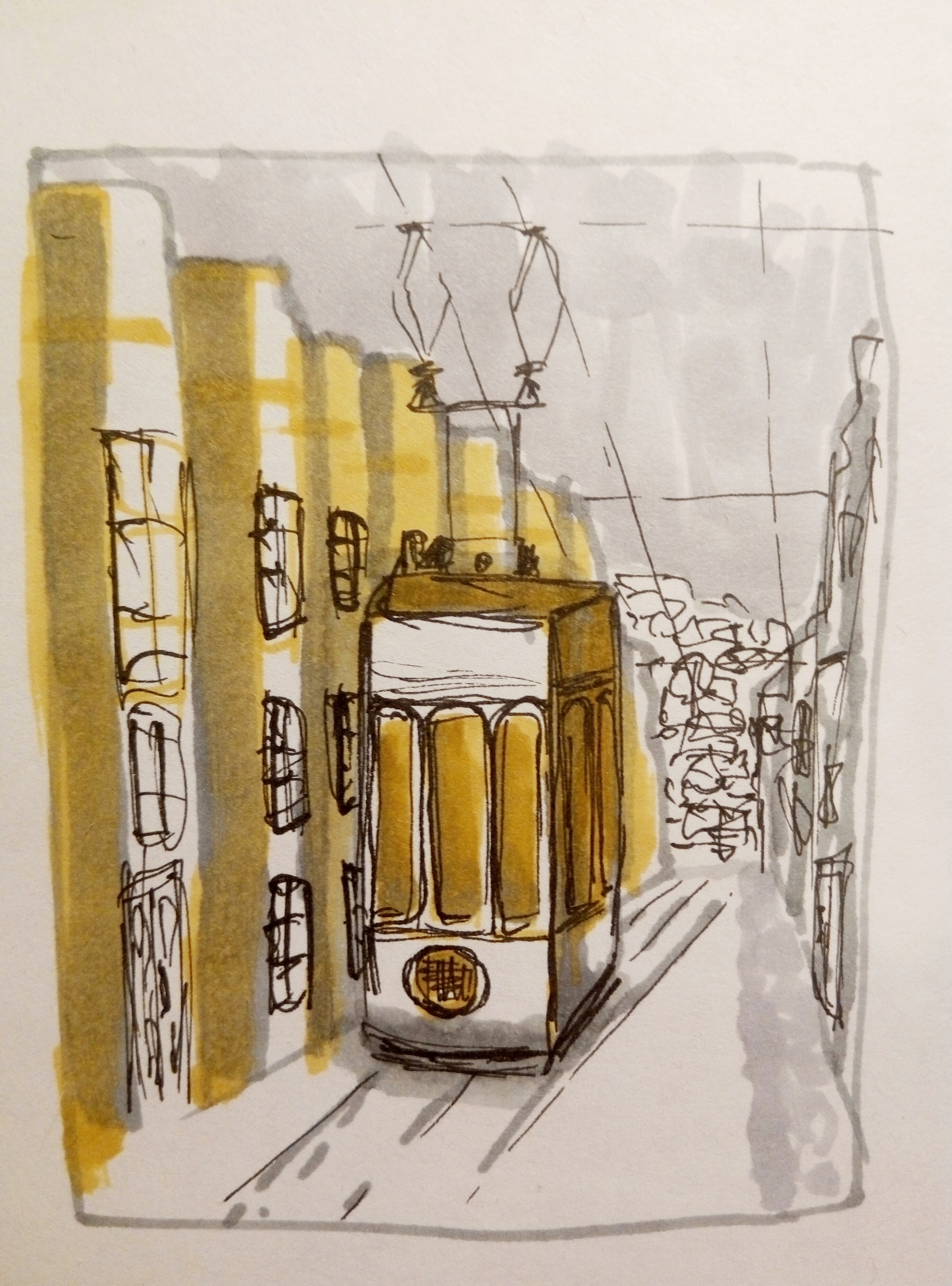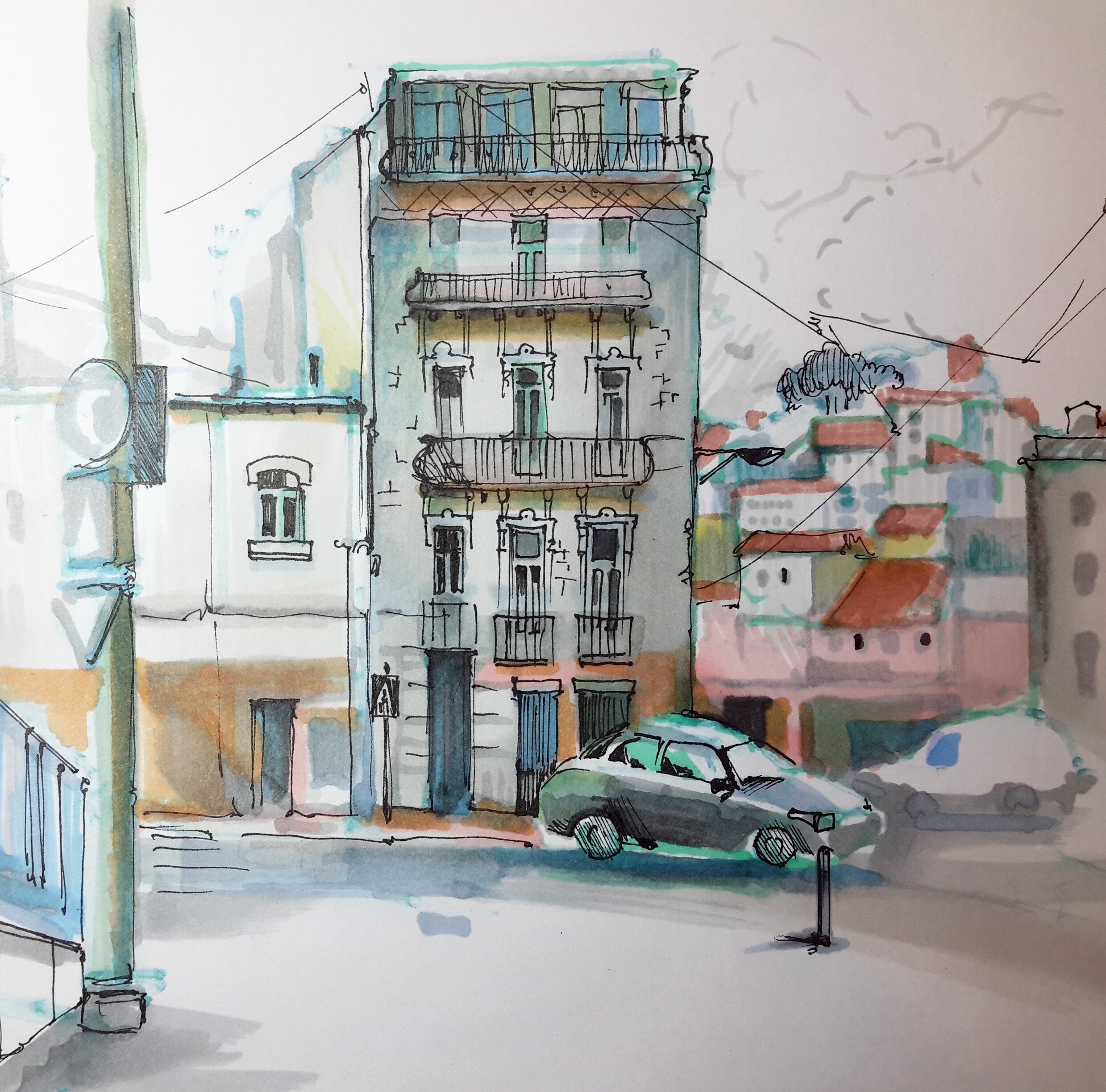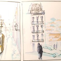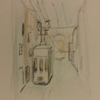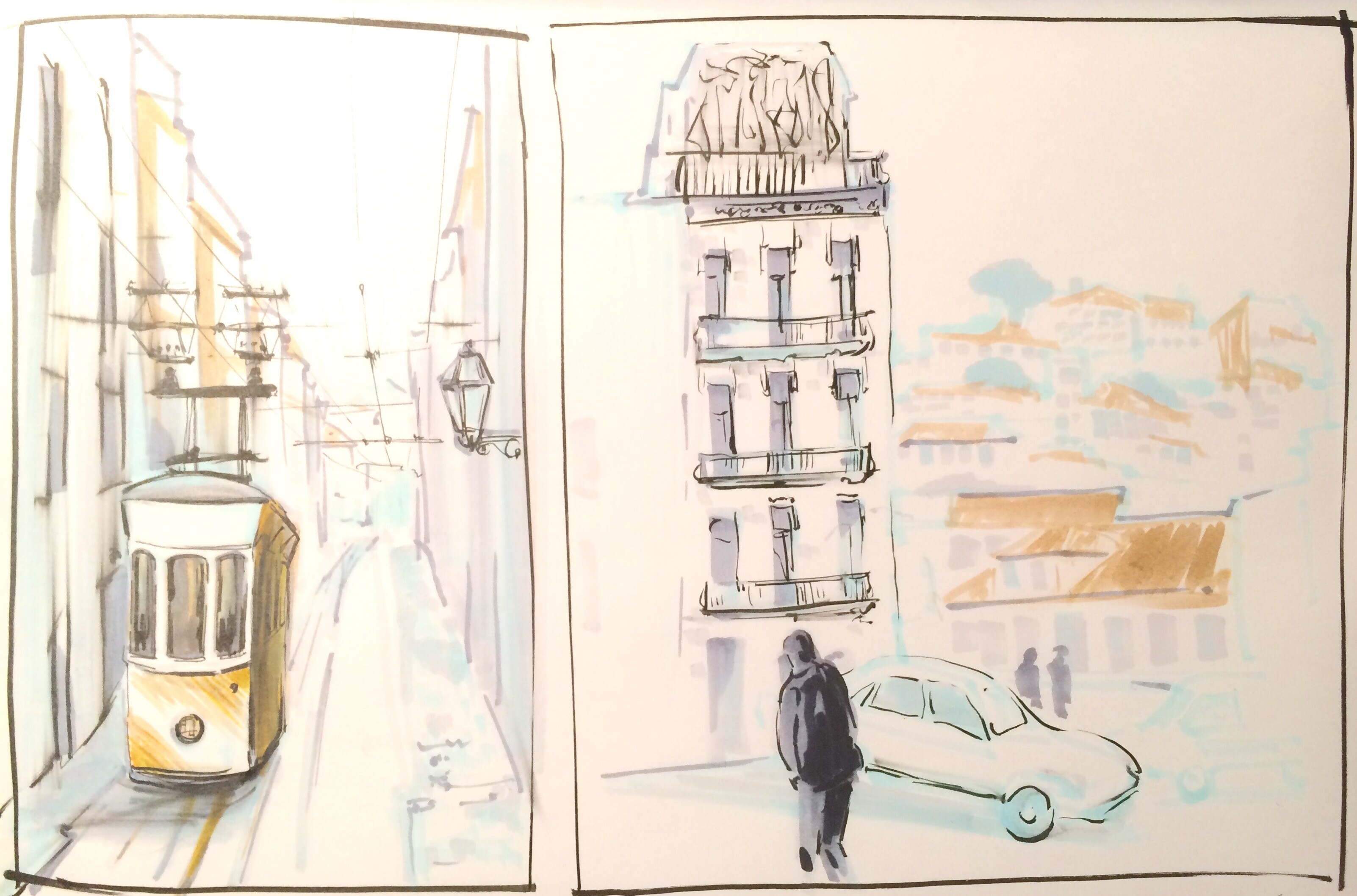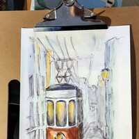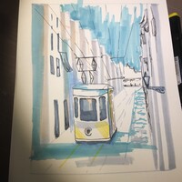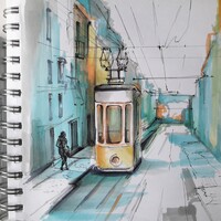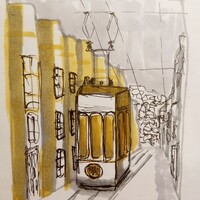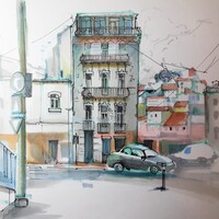 Лиссабон — город многослойный. Интересная архитектура, плотная застройка, легендарный трамвай, а также перепады высот улиц, расположенных на холмах — все это ставит перед художником очень интересные изобразительные задачи.
