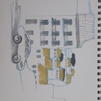 - Тренируемся изображать плотную застройку группами домов;