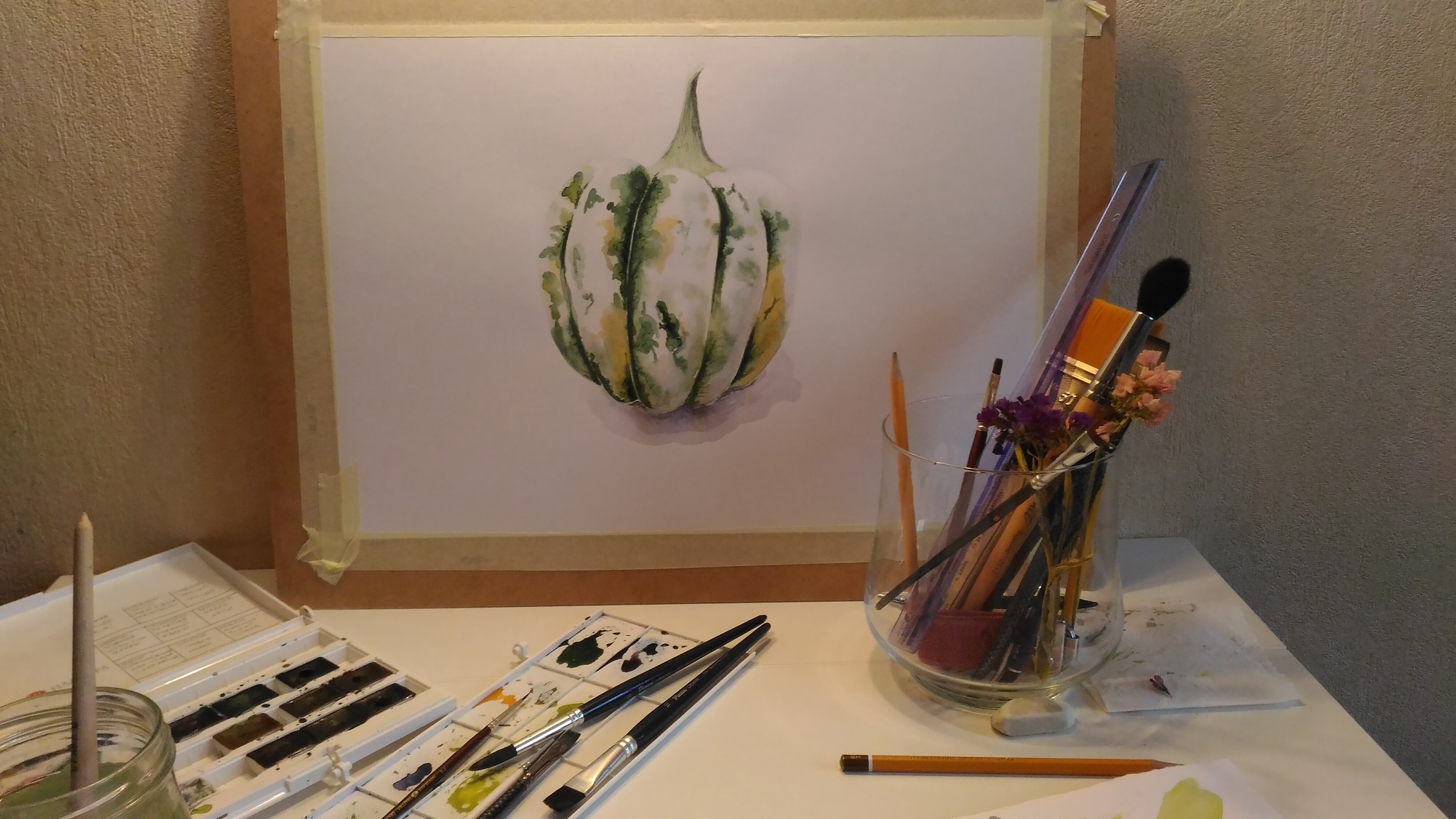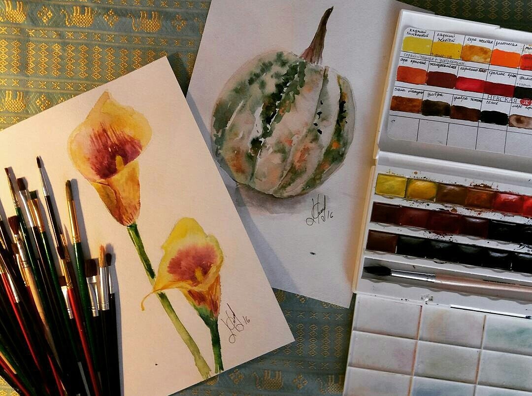 Читать дальшеОчень интересный и красивый урок. Спасибо. Несмотря на то, что я рисовала набором детской акварели - нужные оттенки вполне удавалось смешивать, и получилось весьма прилично)) спасибо за разбор оттенков и что показывали свою палитру. Не хватило проработки. Для меня было бы продуктивнне, если бы весь урок рисовали только, например, тыкву, зато довели рисунок до финала. // еще раз большое спасибо!!