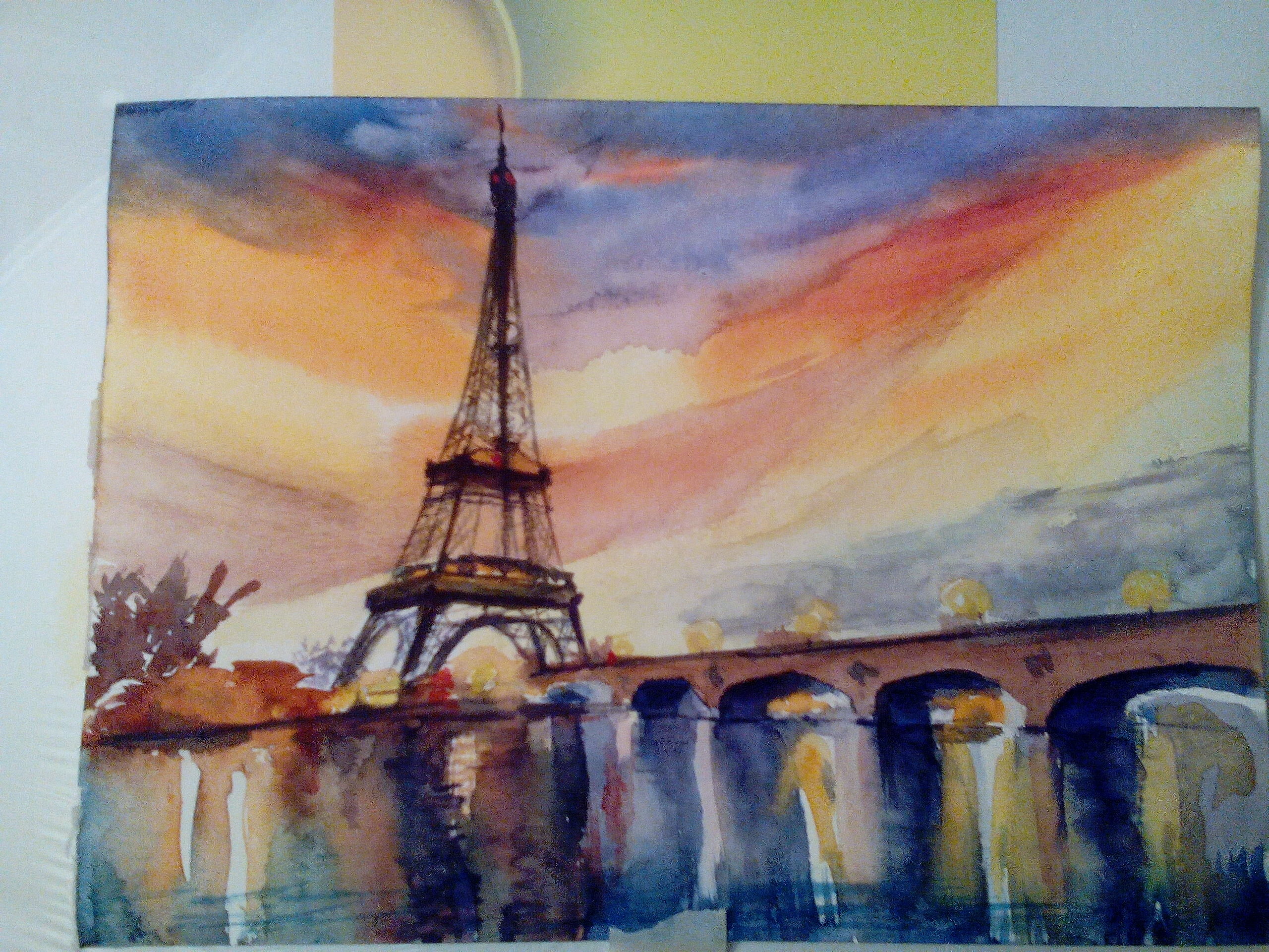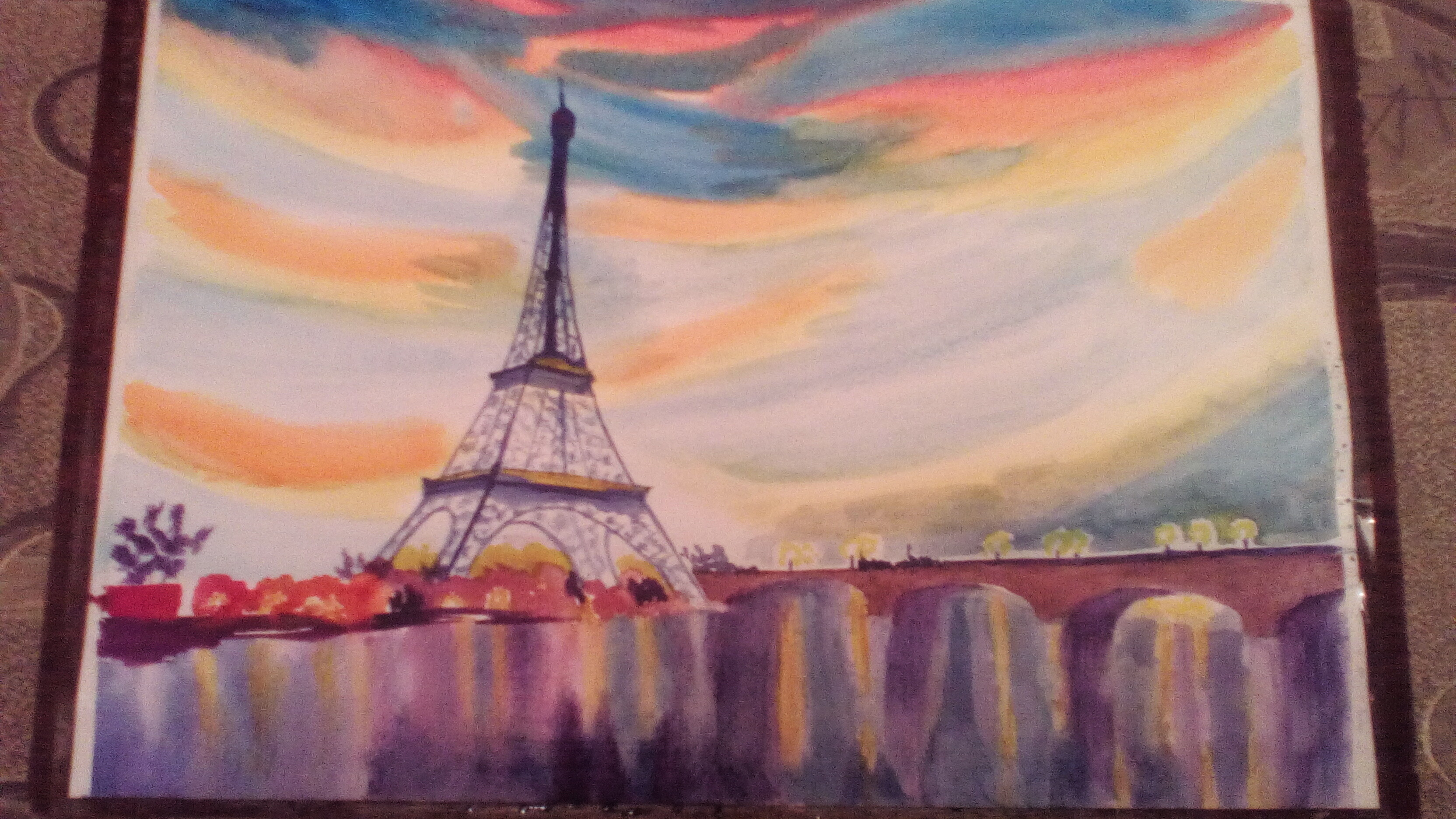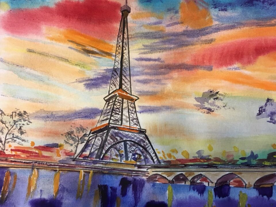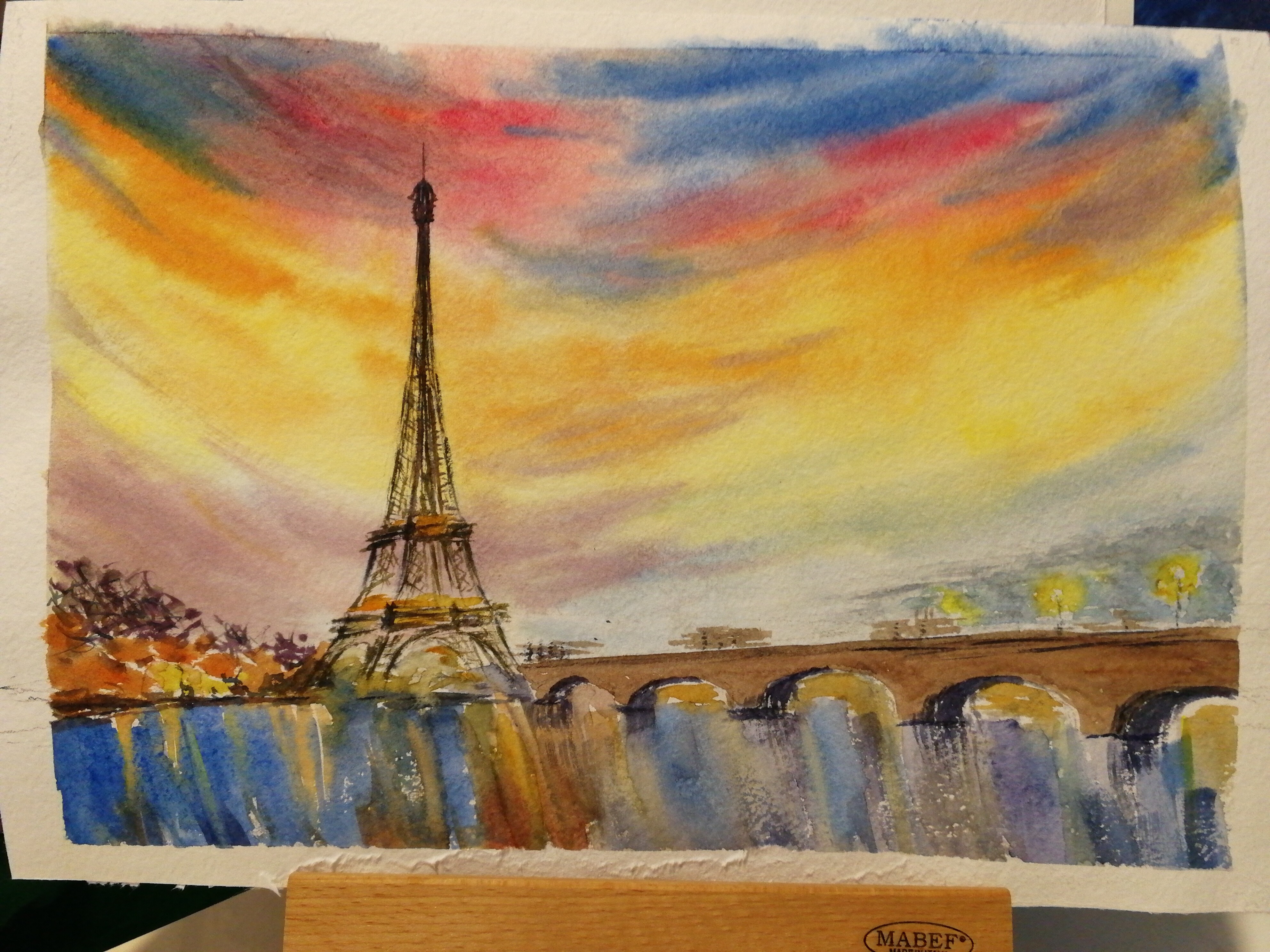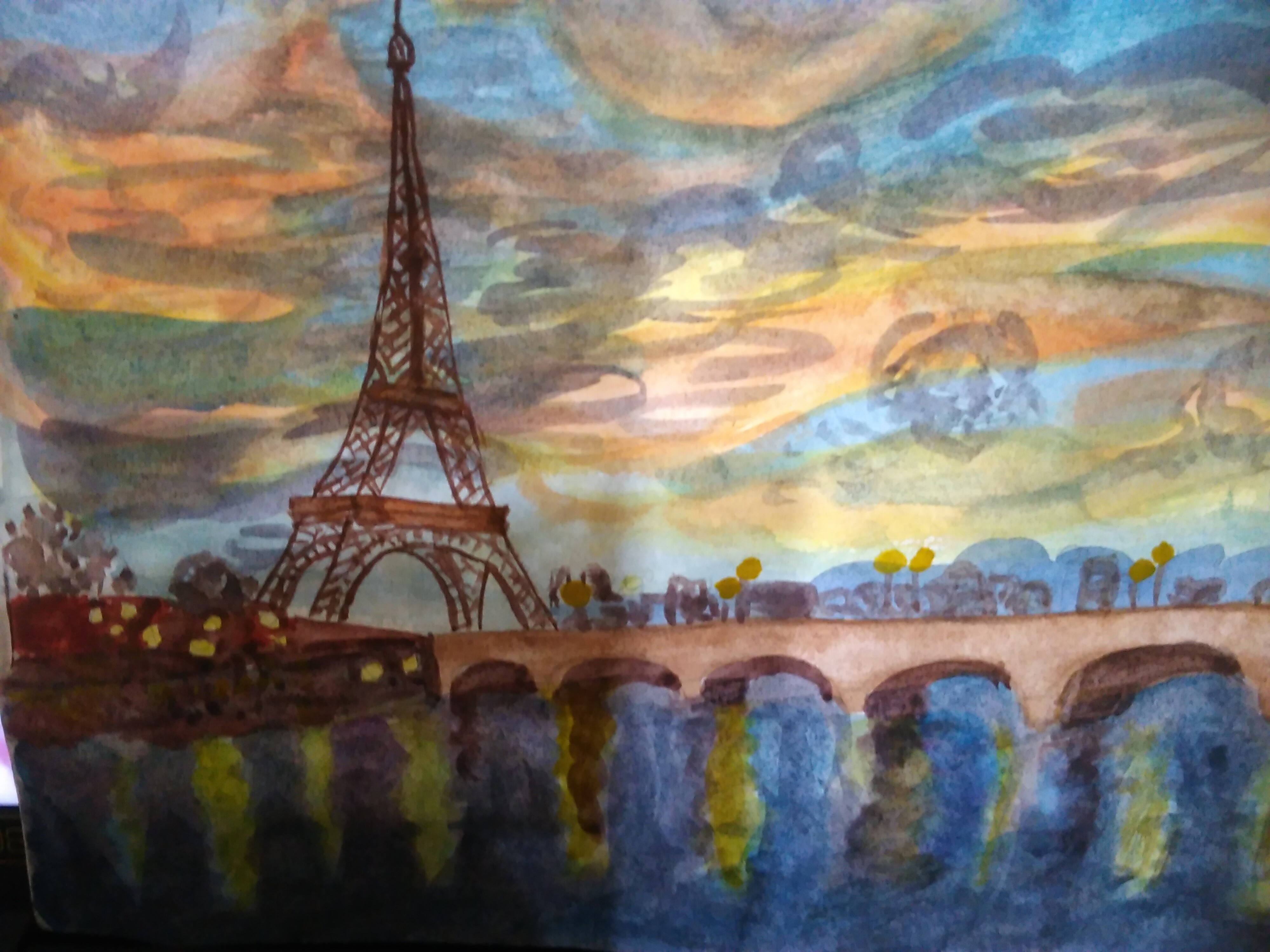 Наталья, благодарю за прекрасный вебинар! Рисовала впервые после школы. Получилось по-детски, но вдохновение получила и с удовольствием буду рисовать Закат в Париже еще, и еще.