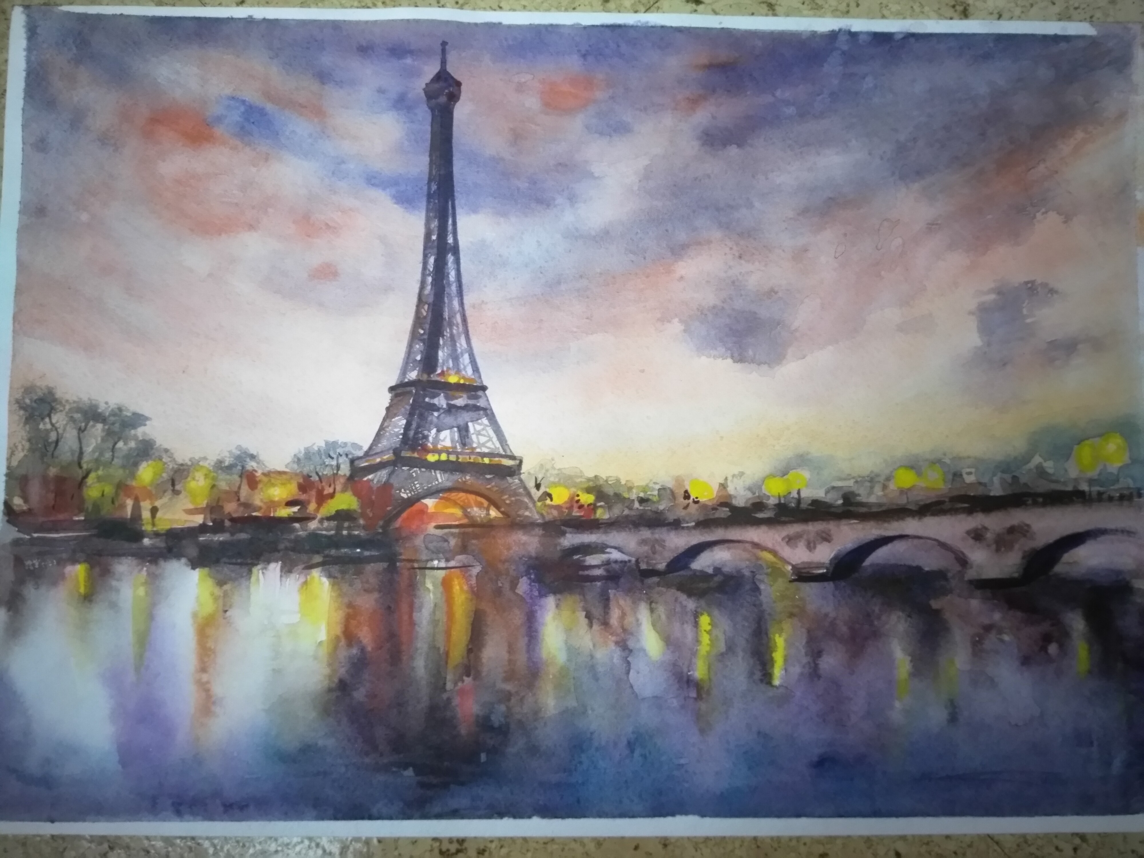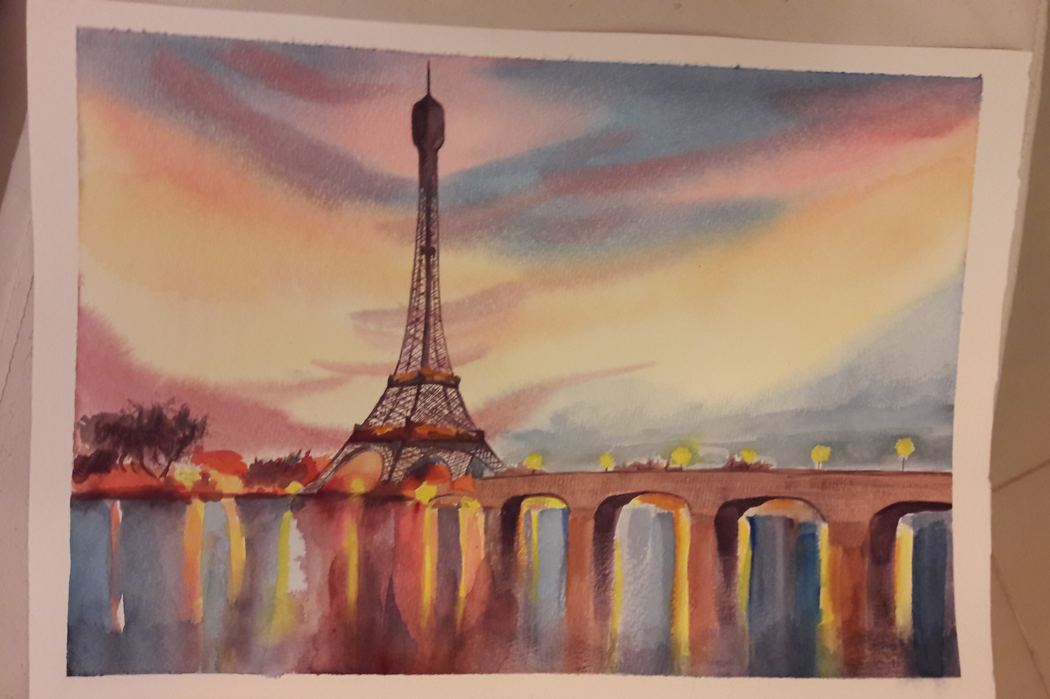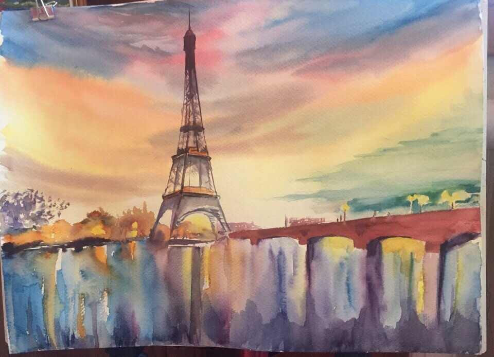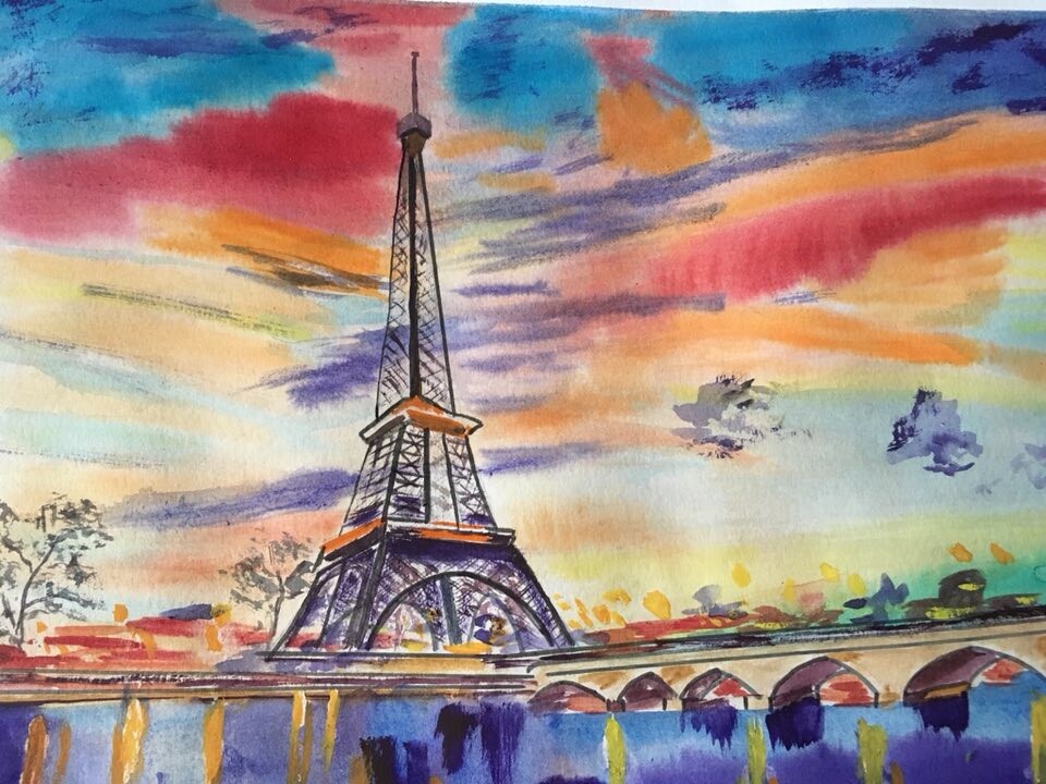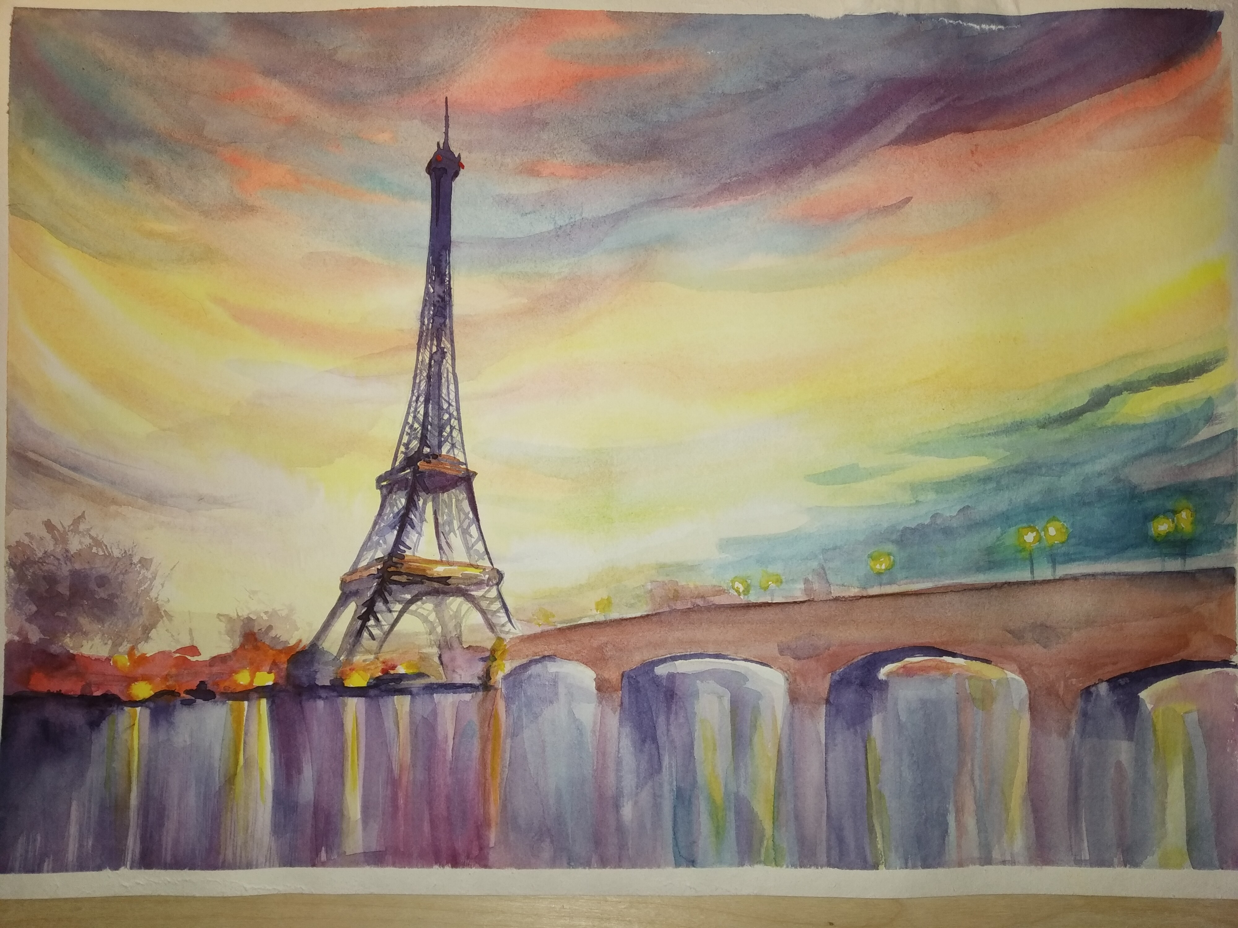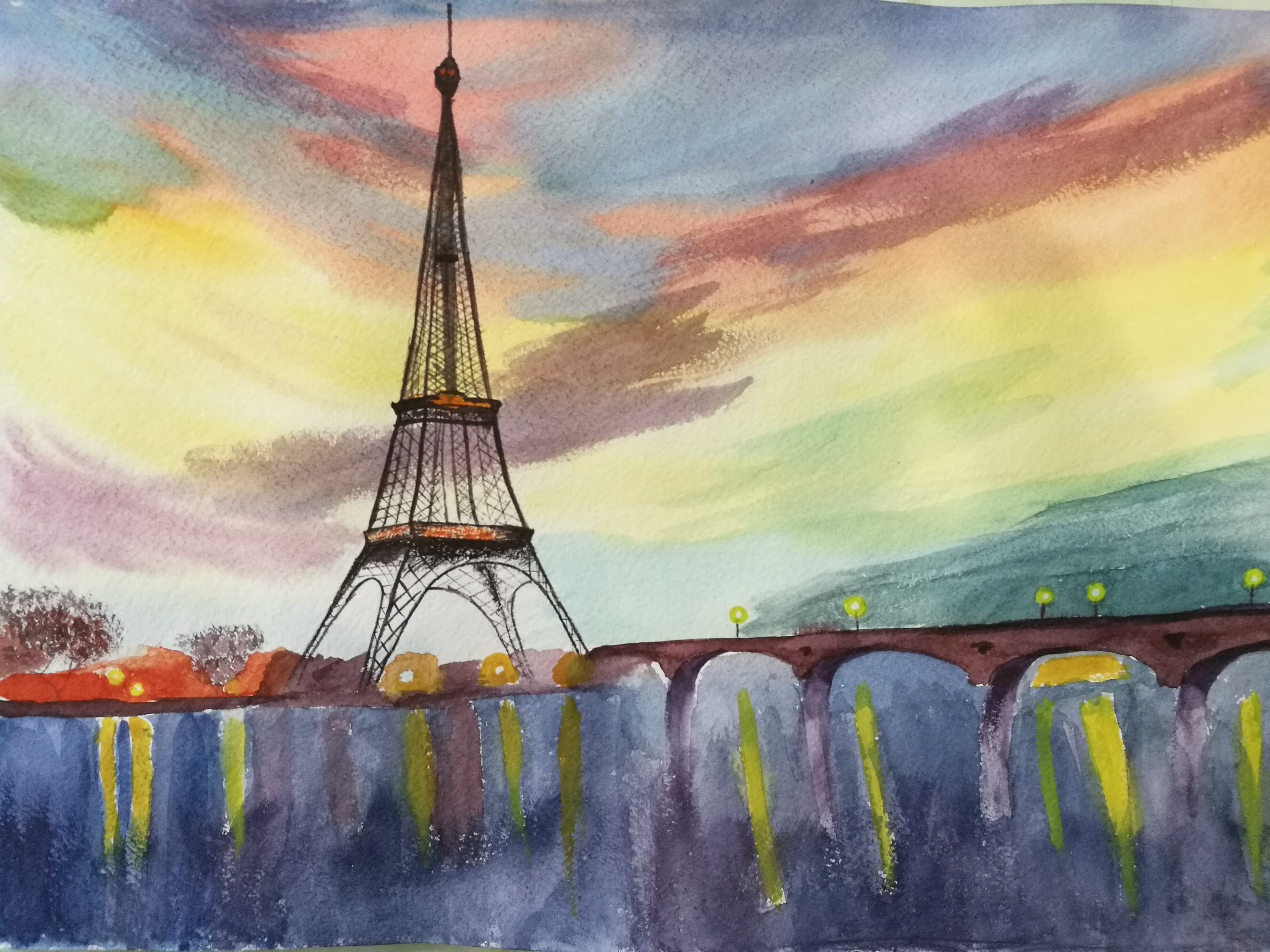 Наталья, благодарю за прекрасный вебинар! Рисовала впервые после школы. Получилось по-детски, но вдохновение получила и с удовольствием буду рисовать Закат в Париже еще, и еще.