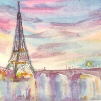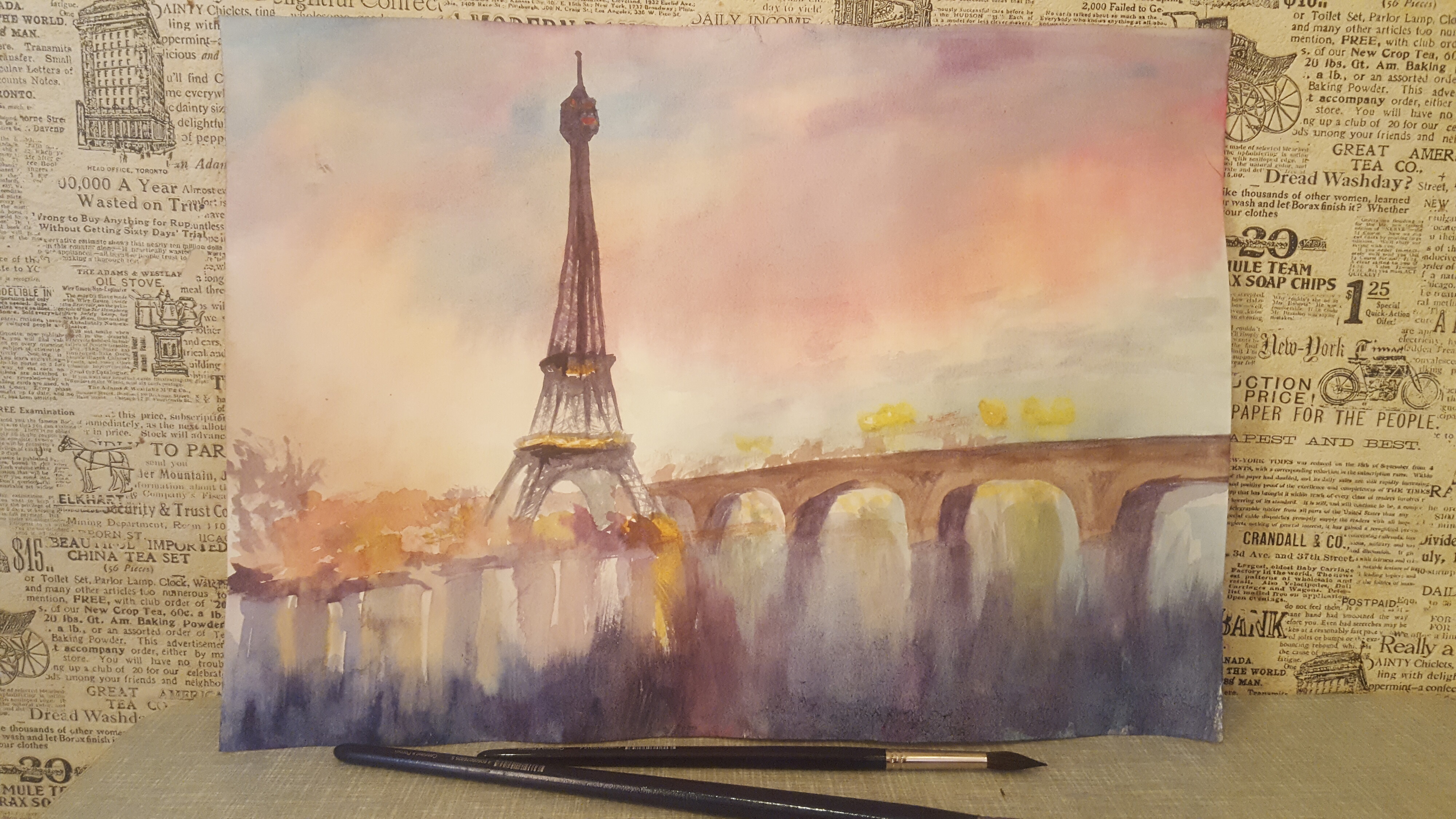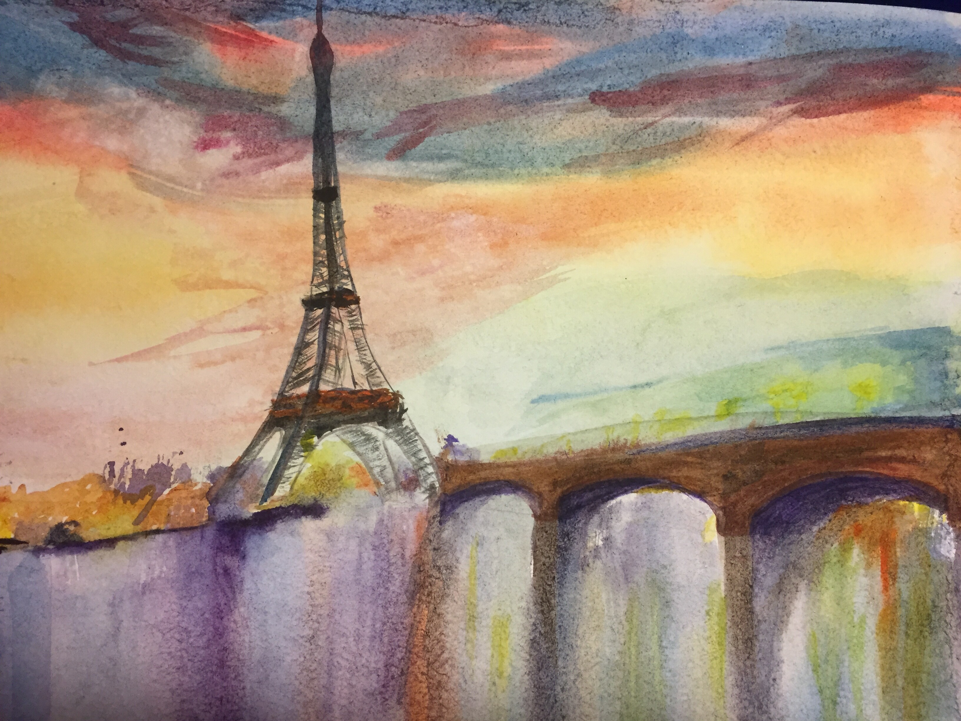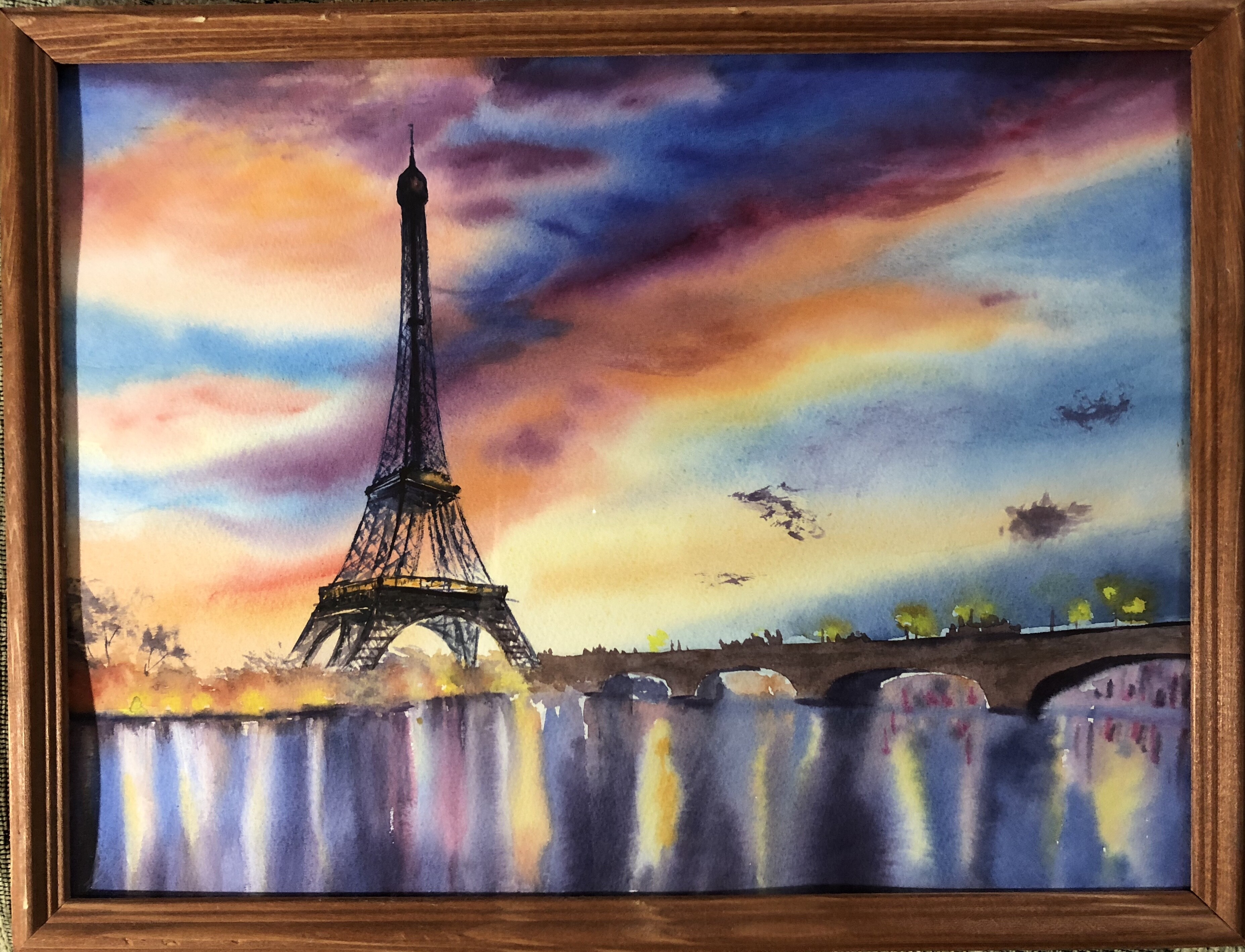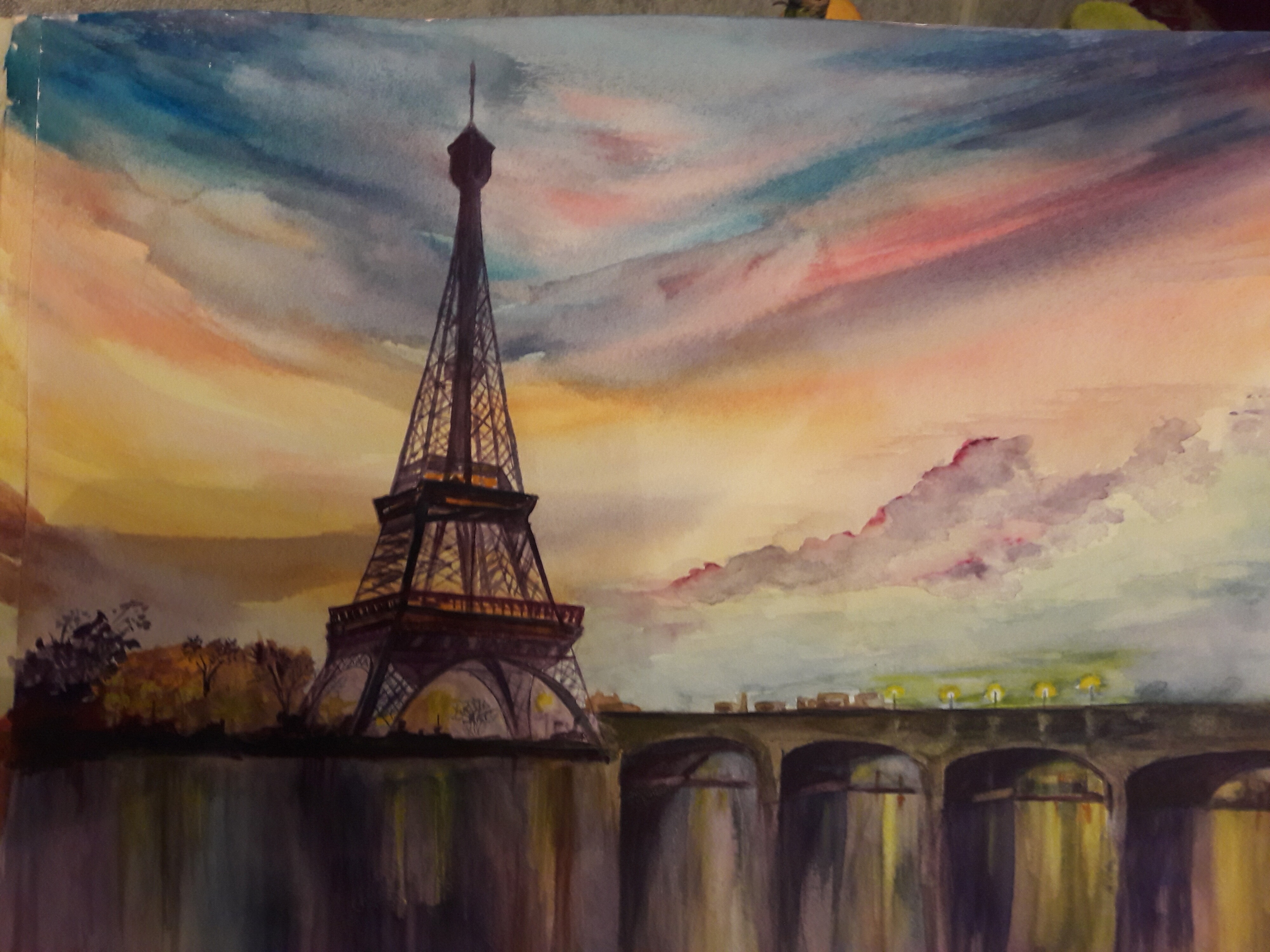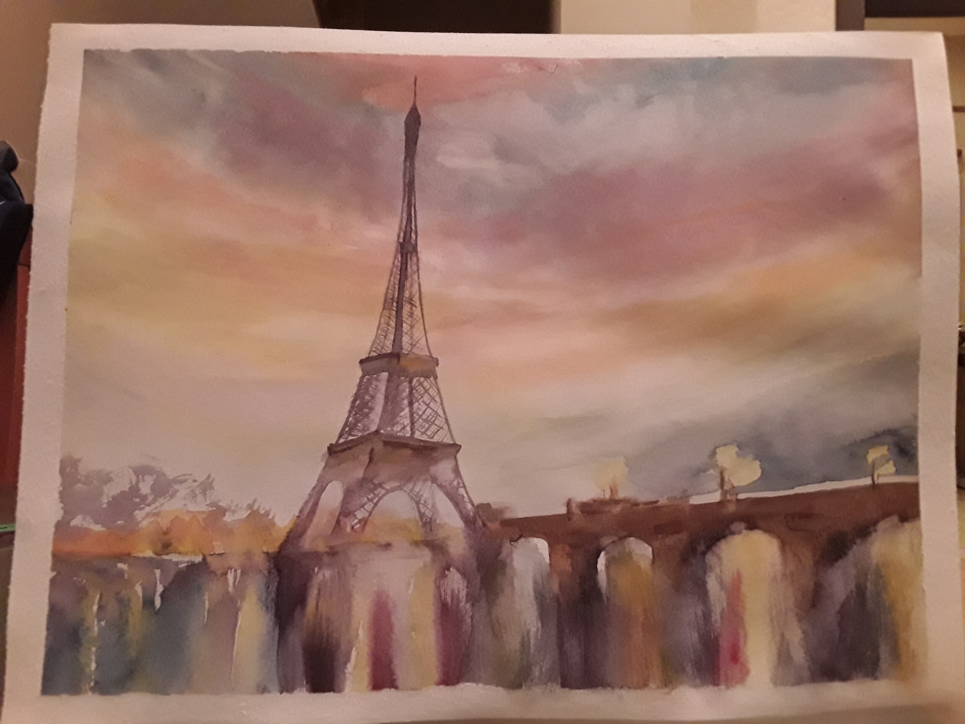 Наталья, благодарю за прекрасный вебинар! Рисовала впервые после школы. Получилось по-детски, но вдохновение получила и с удовольствием буду рисовать Закат в Париже еще, и еще.