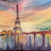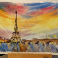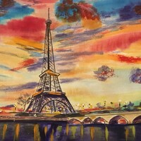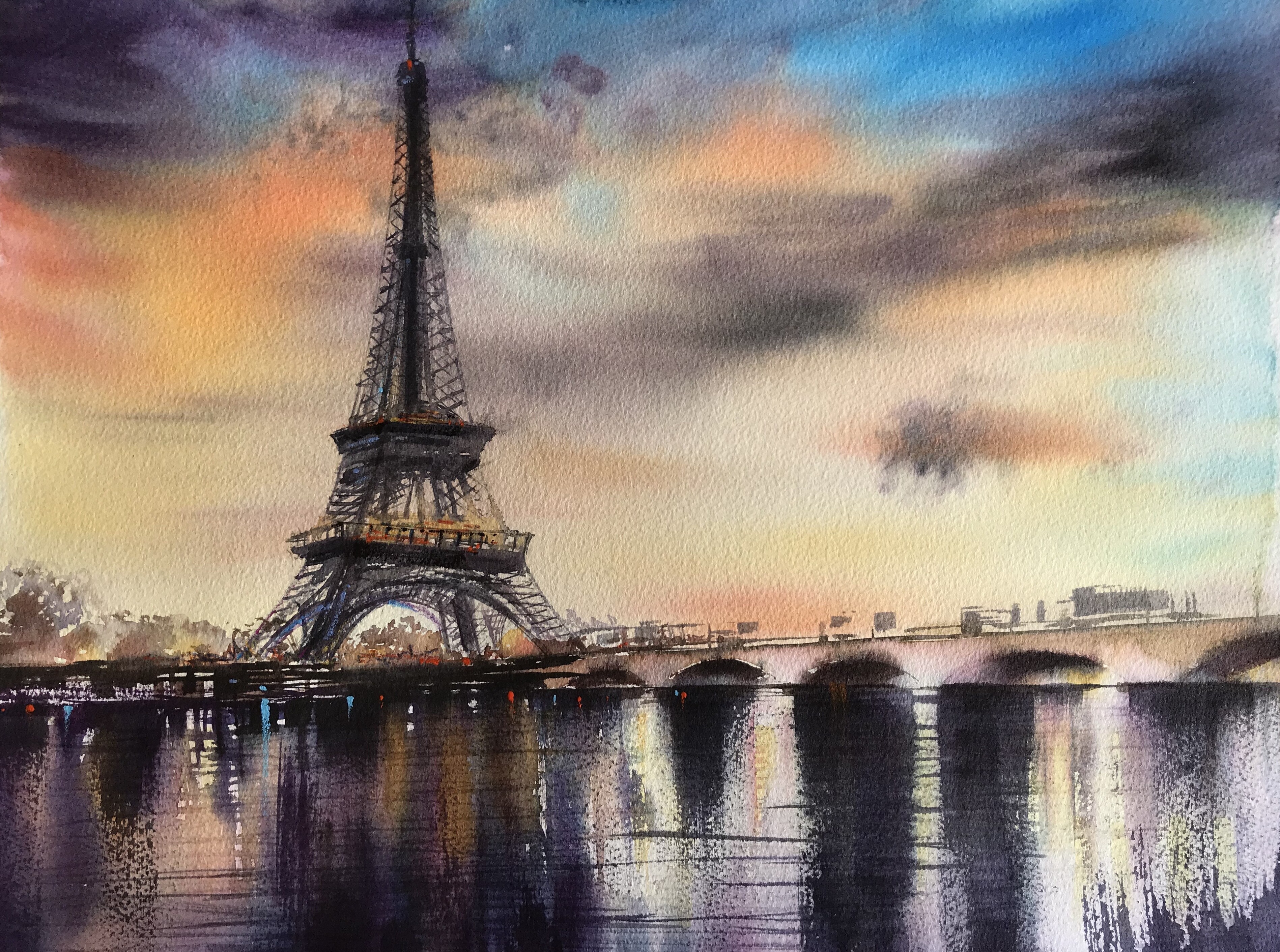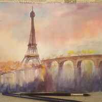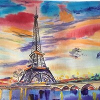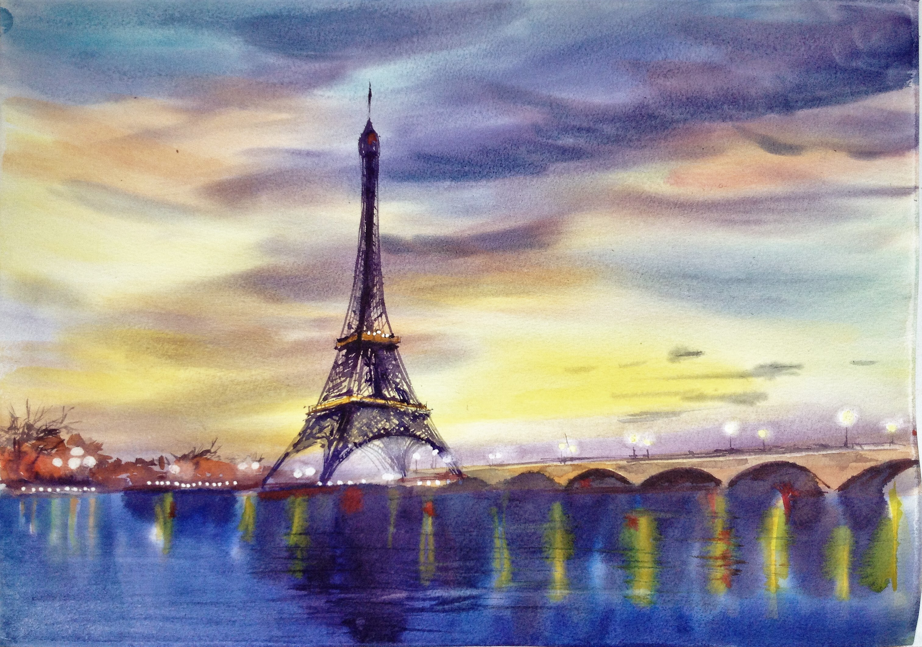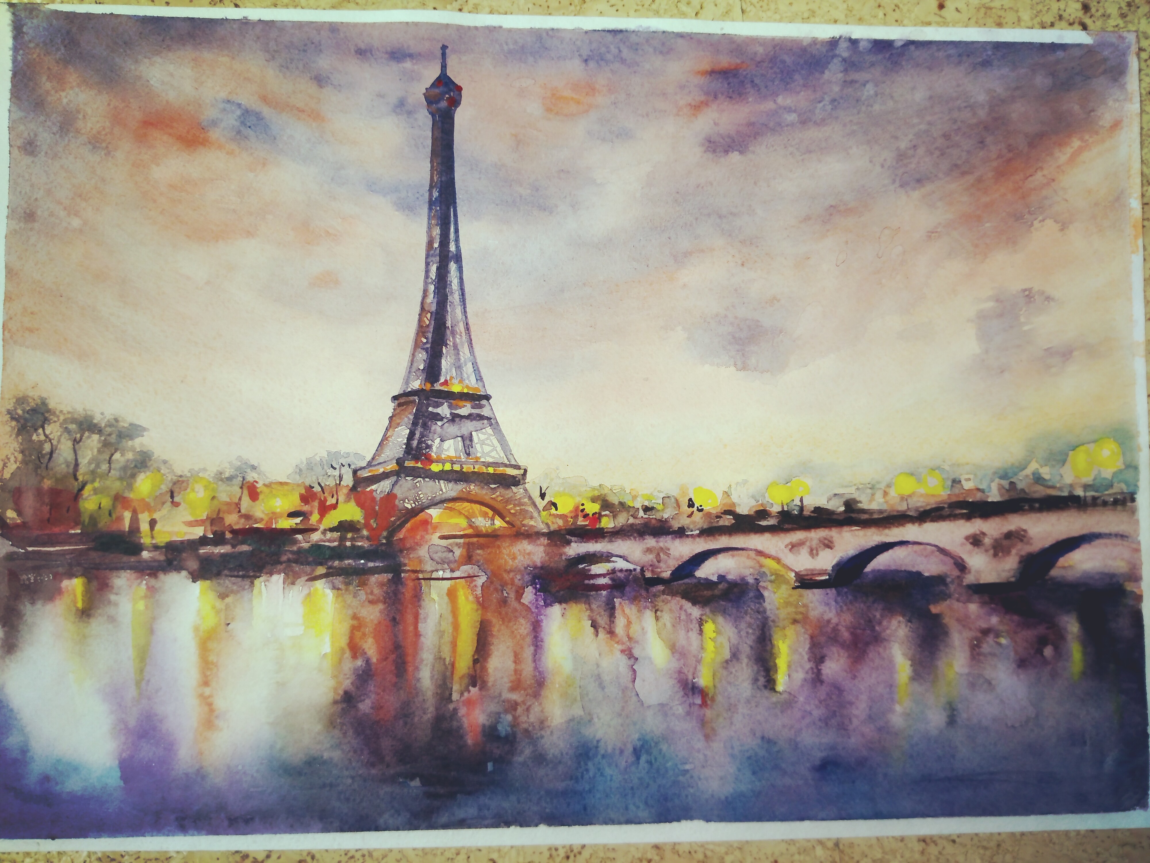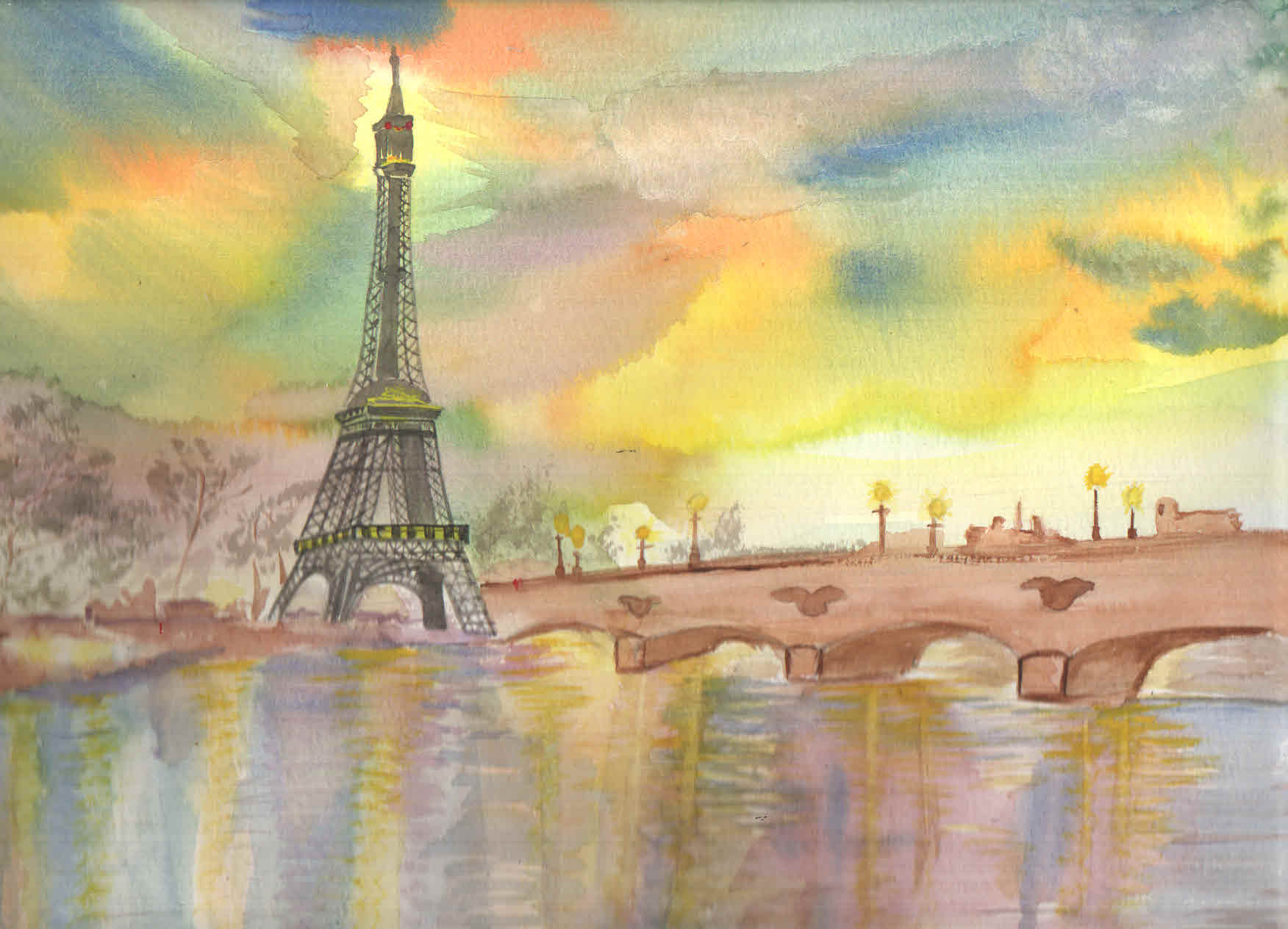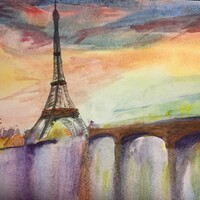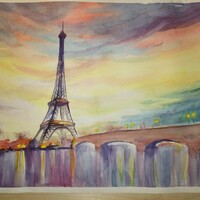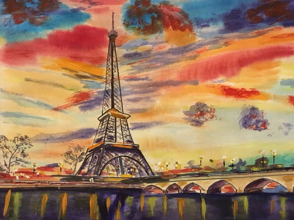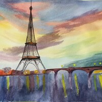 Наталья, благодарю за прекрасный вебинар! Рисовала впервые после школы. Получилось по-детски, но вдохновение получила и с удовольствием буду рисовать Закат в Париже еще, и еще.