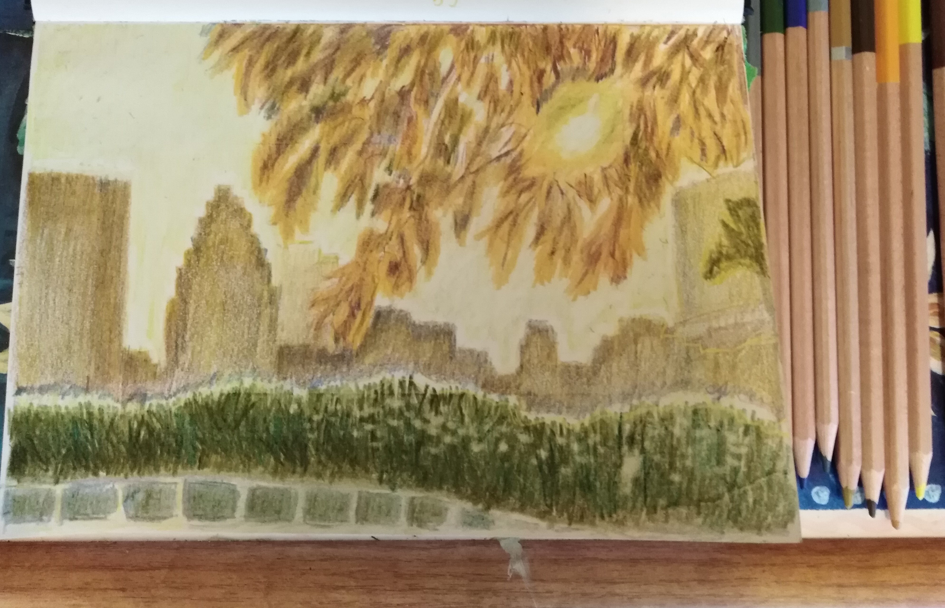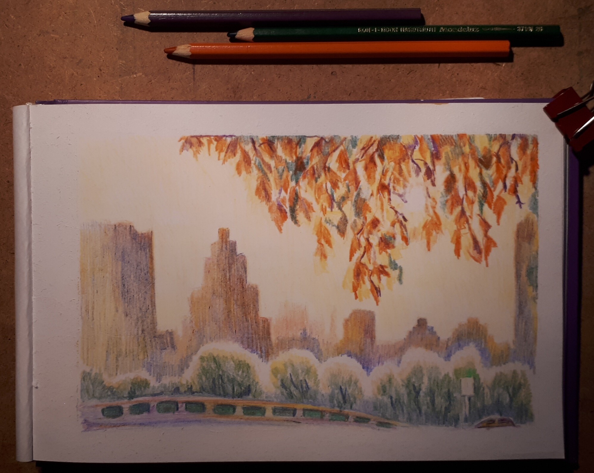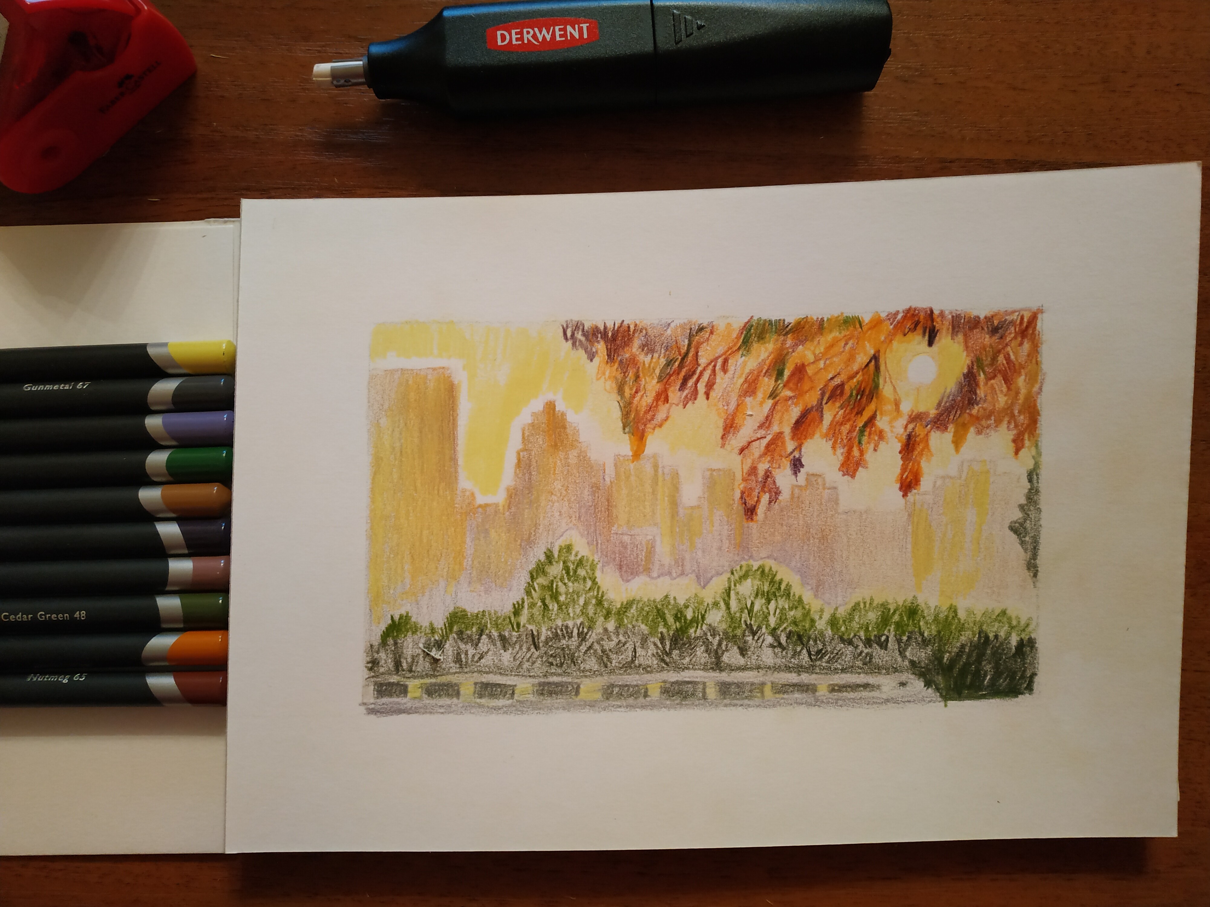 Карандаши - мои любимые Derwent Inktense, немного мягковаты для такой задачи, но по оттенкам прекрасны, как всегда.