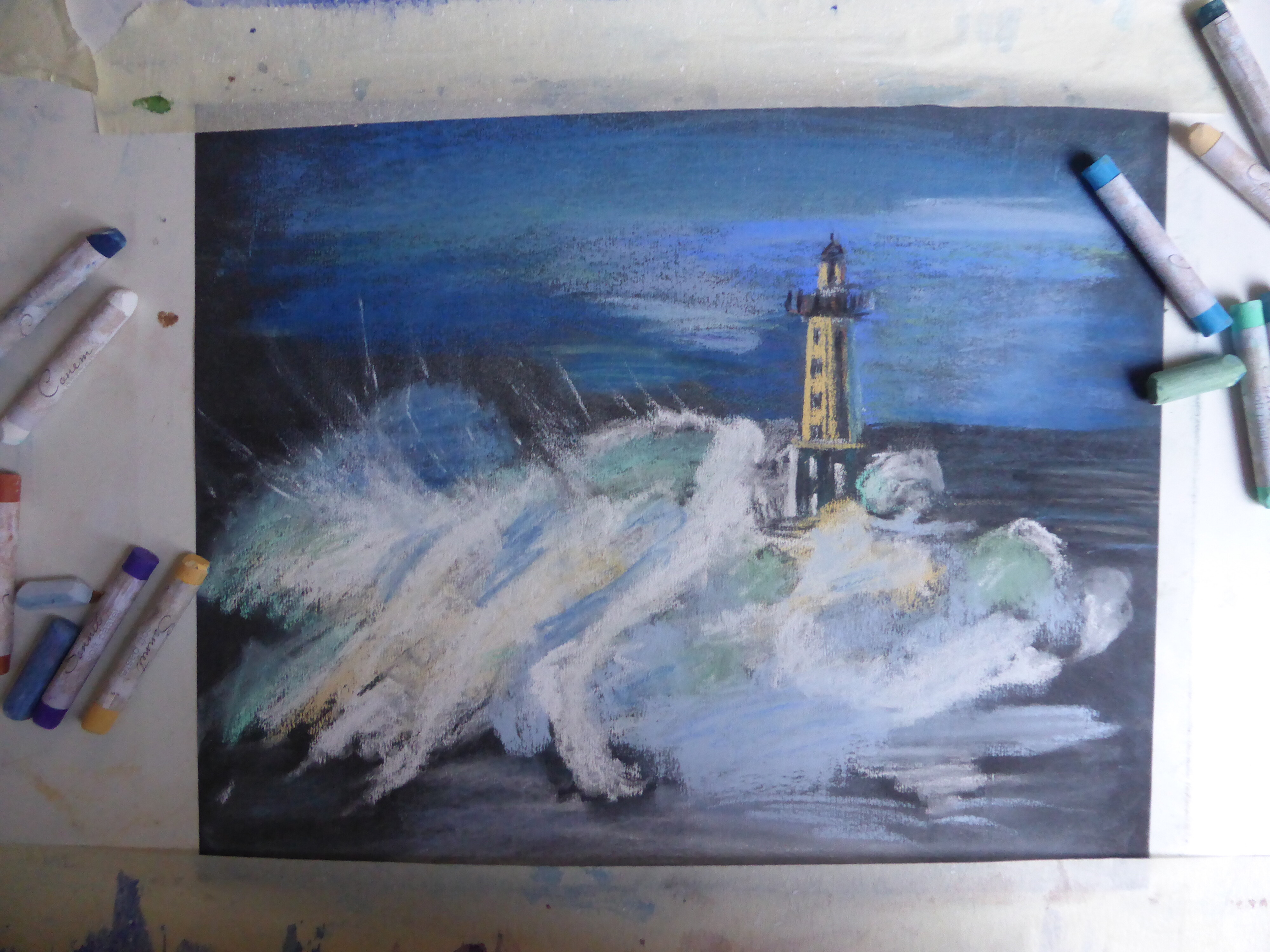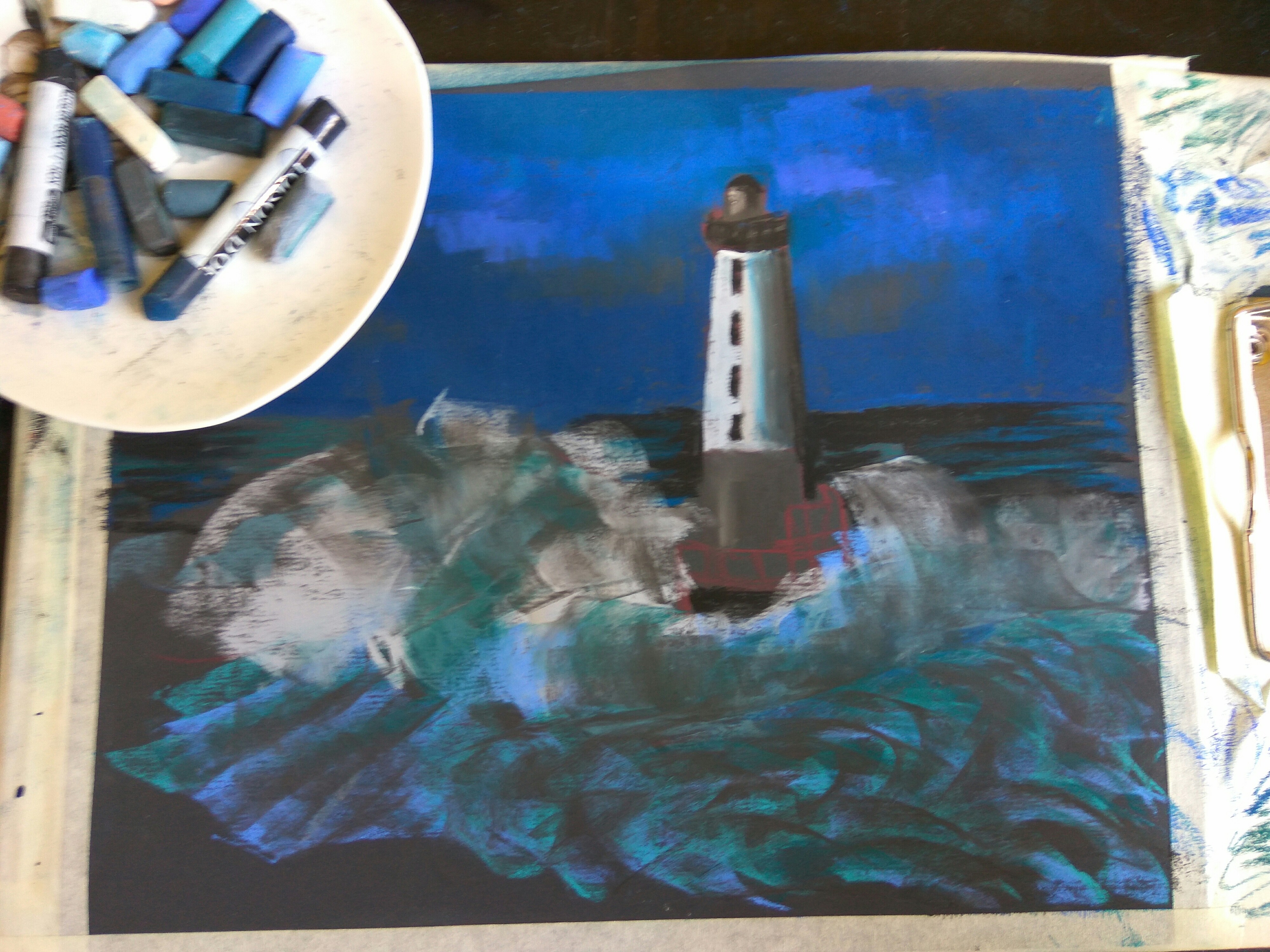 Начинающие пастелисты зачастую боятся рисовать море, потому что не знают, как мягким материалом изображать волны.