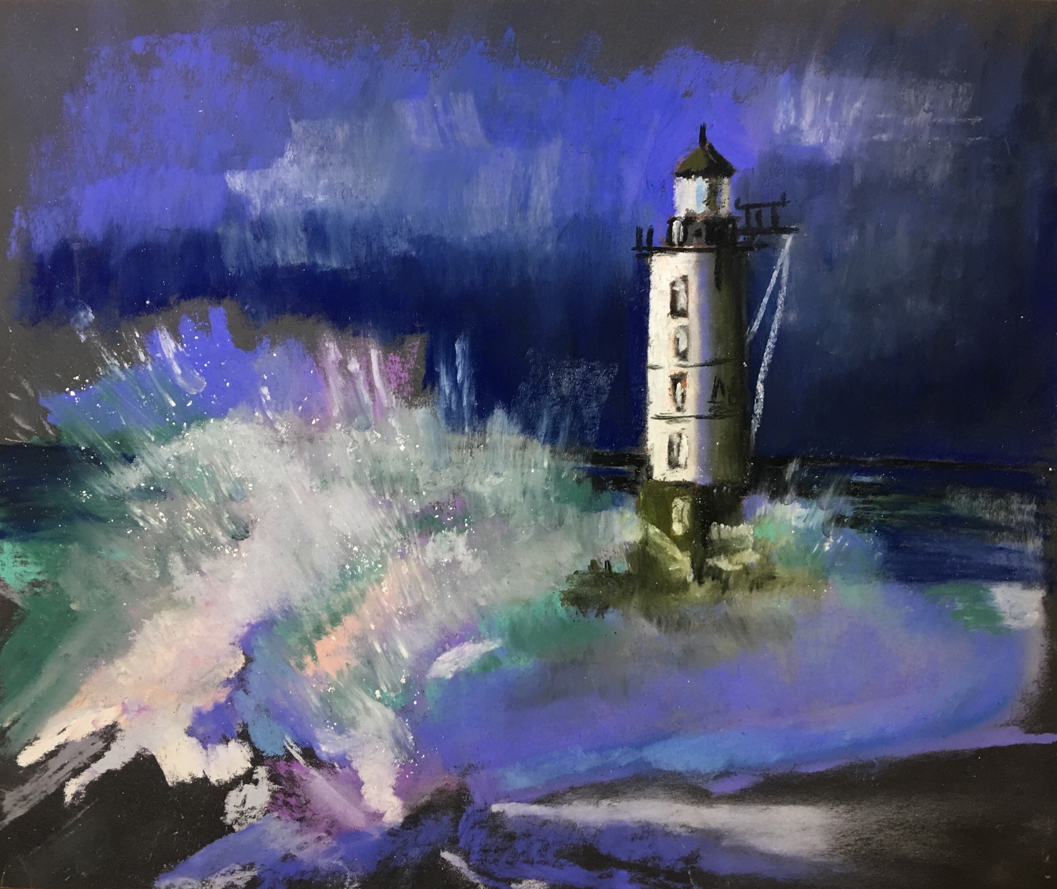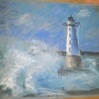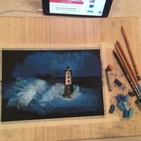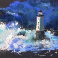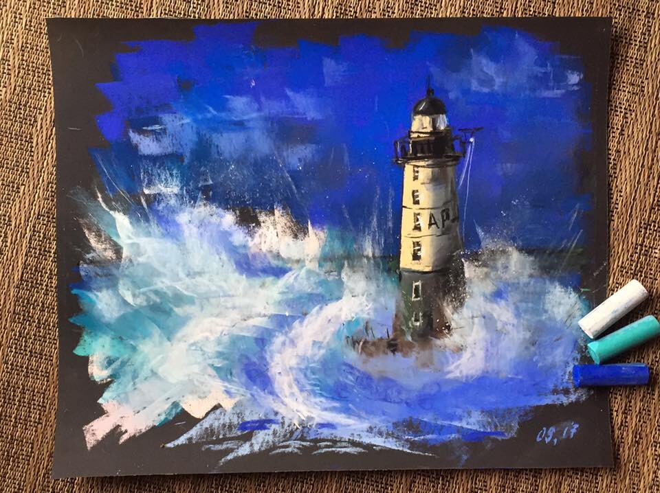 Мы разберемся, какими средствами выразительности передавать разные состояния моря. Попробуем две абсолютно разные техники: экспрессивную, мазковую для передачи мрачной бунтующей стихии и спокойную с растяжками и растушевками для изображения водного пейзажа, как на самых теплых отпускных фотографиях.