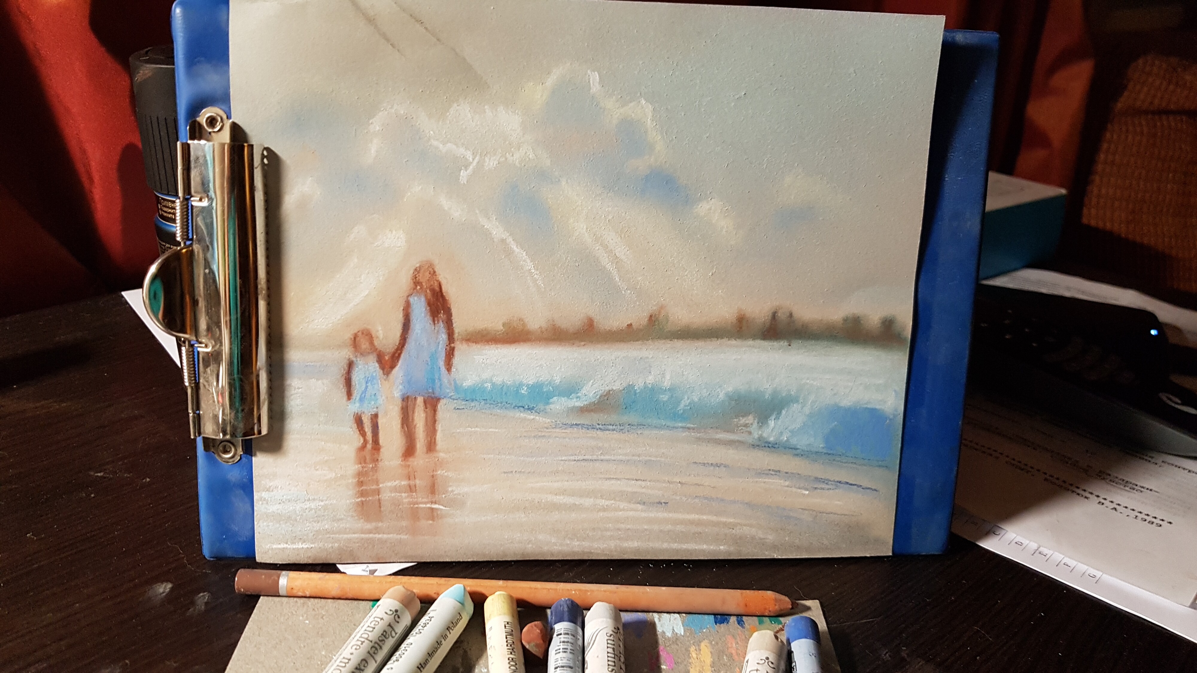 Читать дальшеСпасибо ещё раз за вебинар! Была и в онлайне, даже начала рисовать, но потом поняла, что, как человеку неопытному, сложно и вебинар смотреть и рисовать, а когда я увидела, что у меня совсем не та палитра цветов и нет нужных оттенков, совсем расстроилась и отложила своё рисование. Но вот спустя пару дней решила все-таки закончить и вот что получилось. Хочу сказать, что это первый мой опыт в пастели, в рисовании чего-либо подобного.
