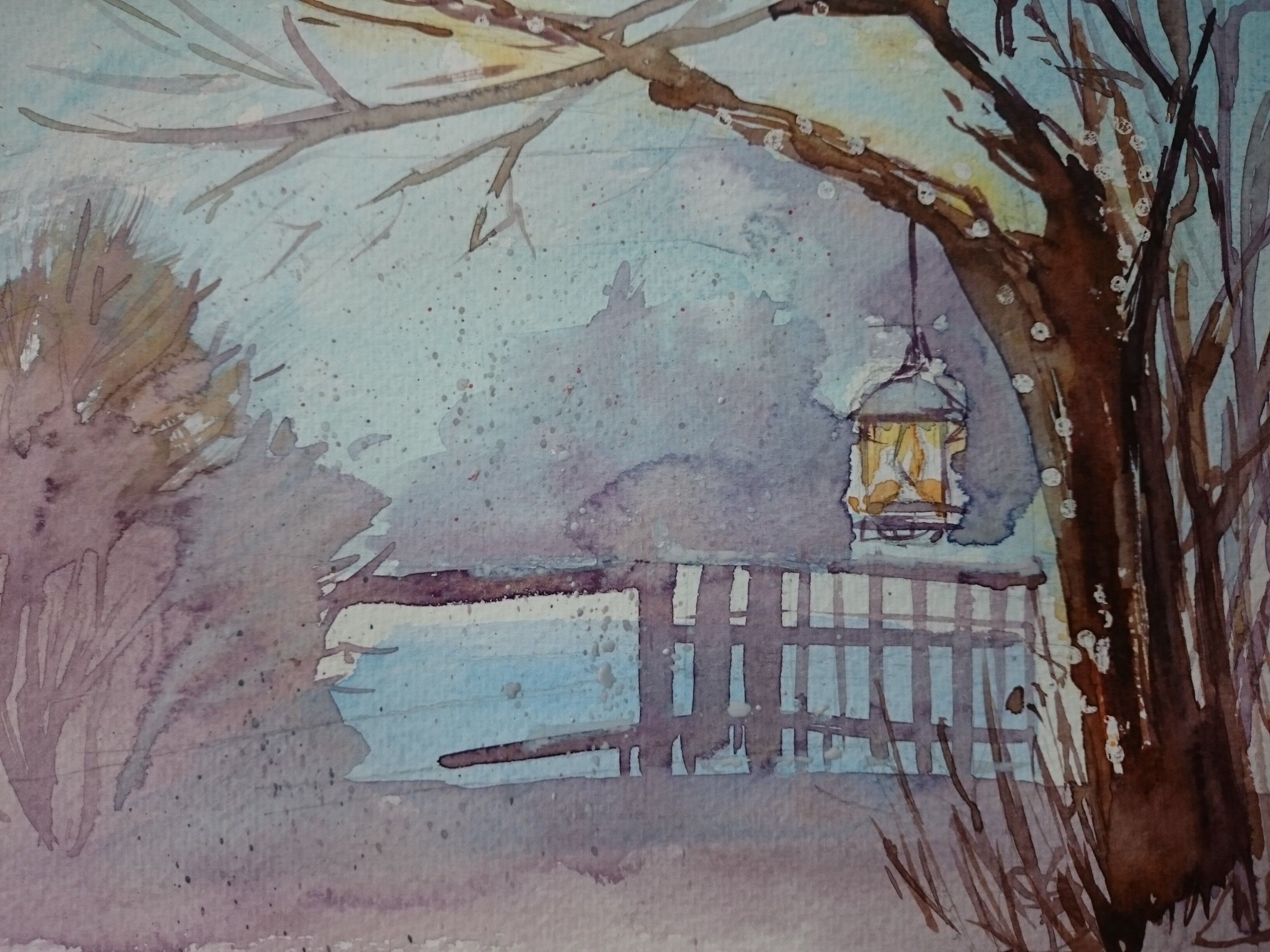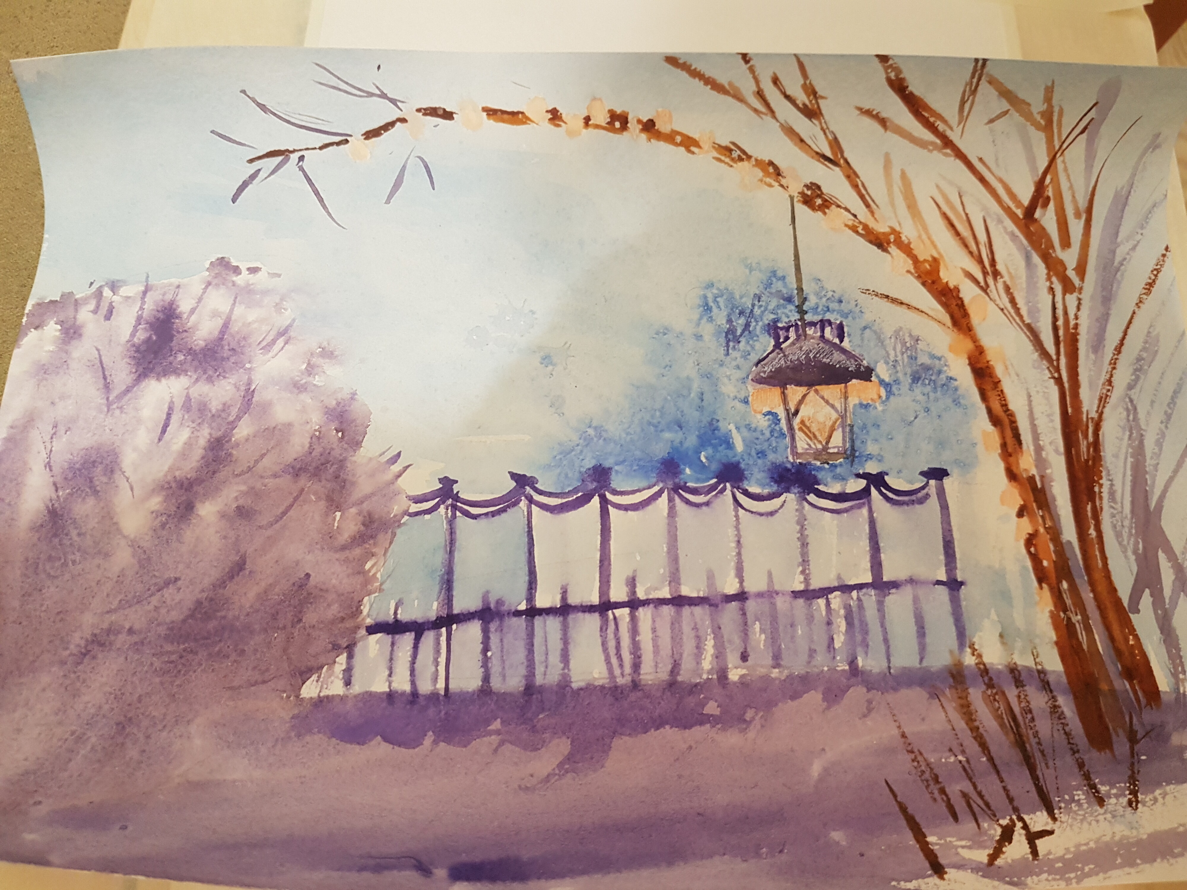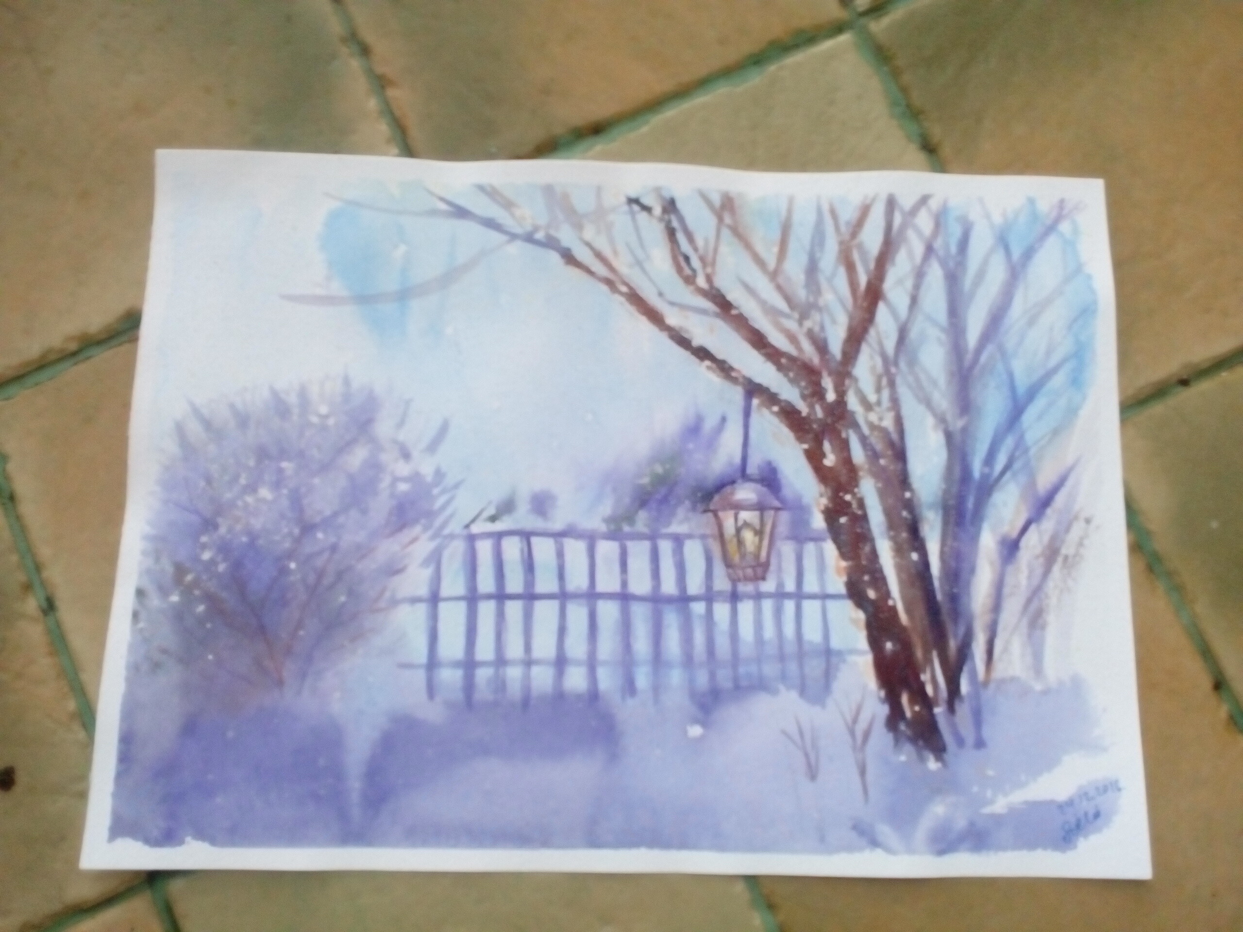 Мы будем рисовать романтичный заснеженный пейзаж. Научимся передавать красками все оттенки снега, освоим необычную технику изображения искрящихся снежинок и попытаемся уловить и запечатлеть на бумаге рождественское настроение.