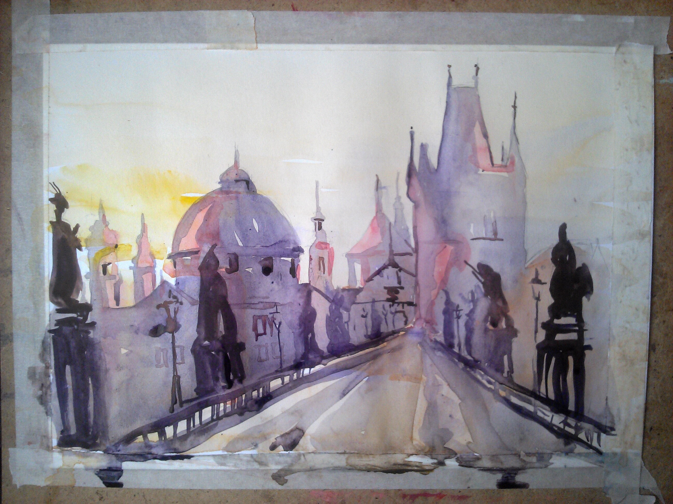 Будем рисовать акварельные этюды городских улочек.