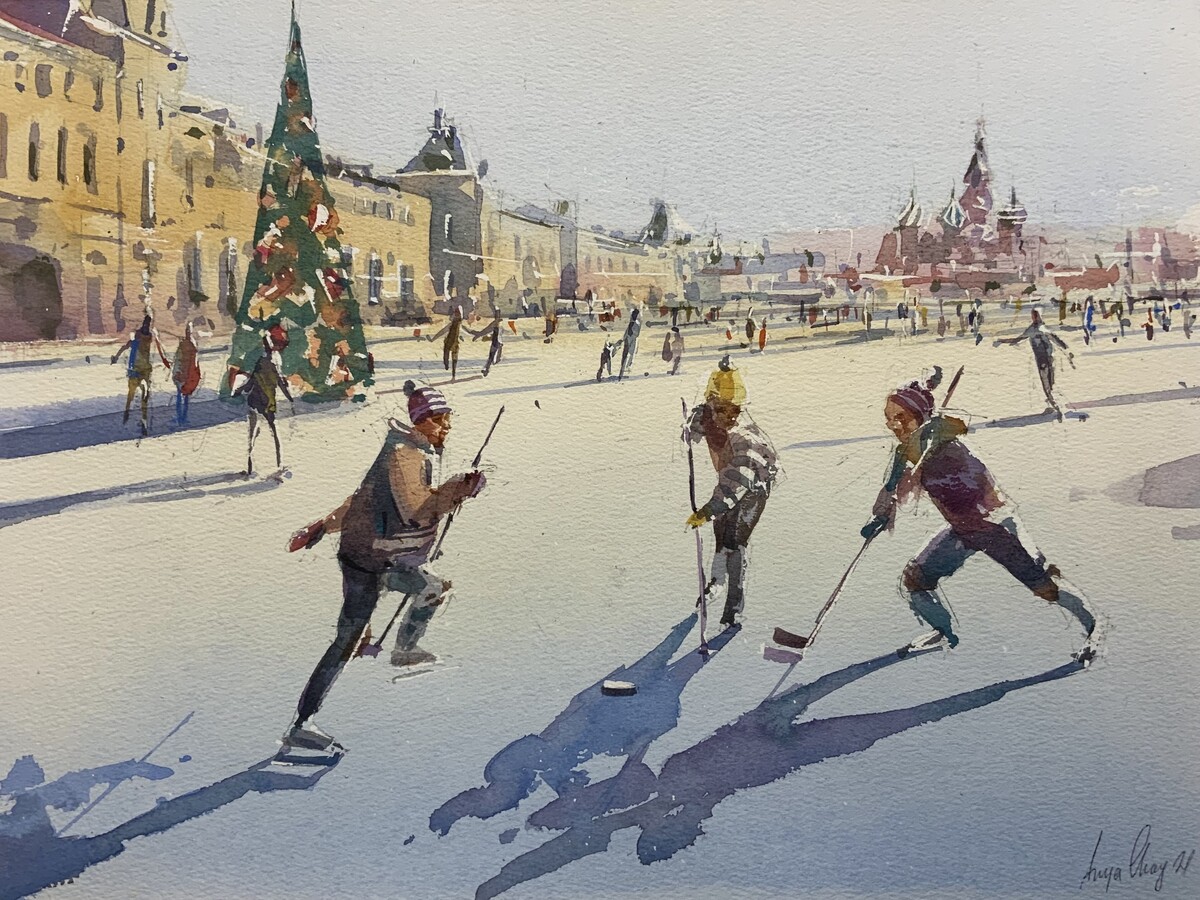 Каток на Красной площади (Анна Чайникова, акварель)