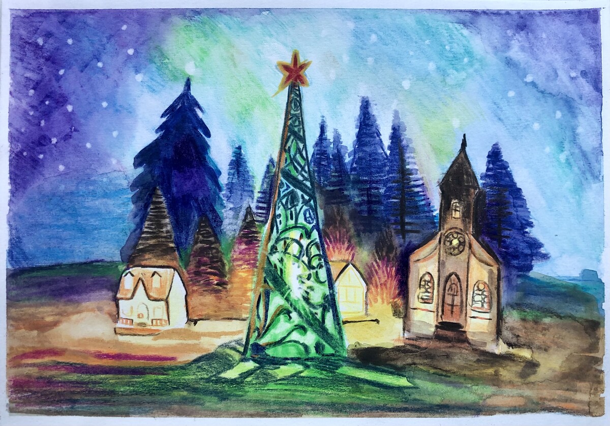 Новогодняя открытка (Анна Эгида, цветные карандаши)