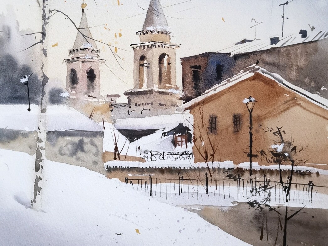 Русская зима (Ольга Андрущенко, акварель)