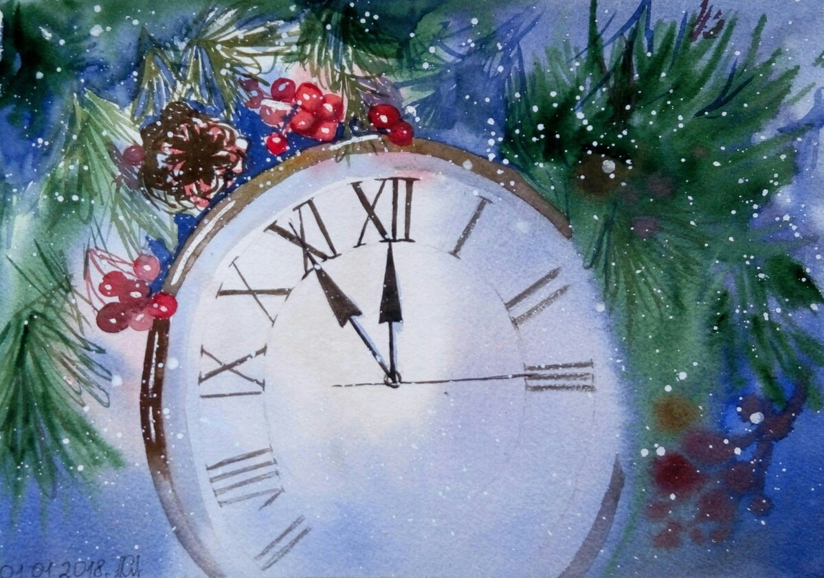 Некоторые работы участников онлайн-курса «Акварельная зима II»
